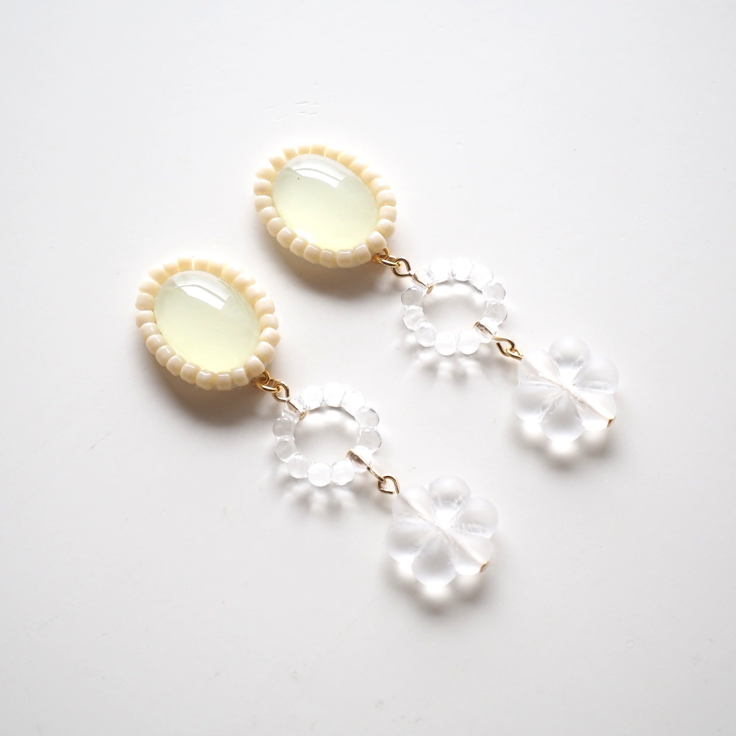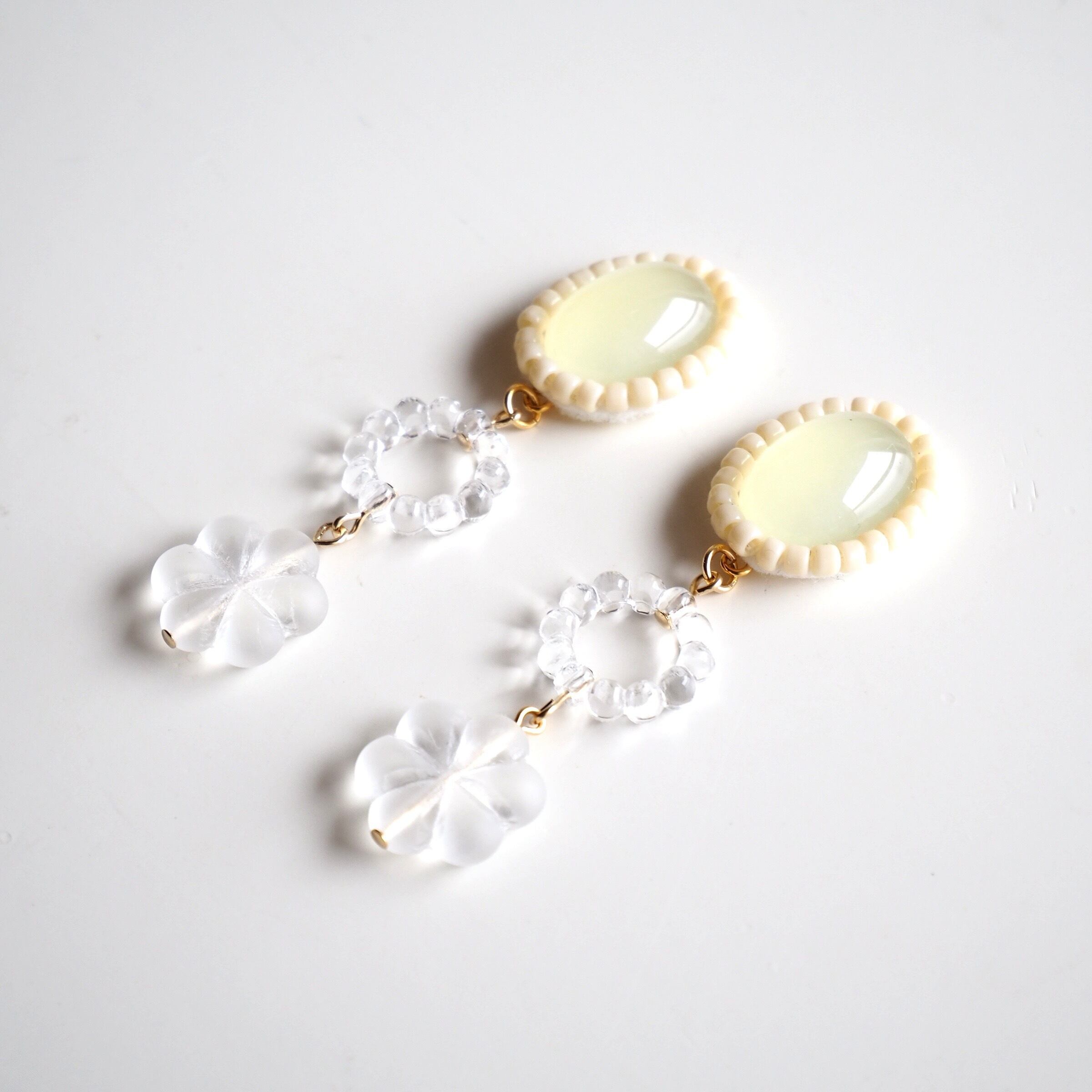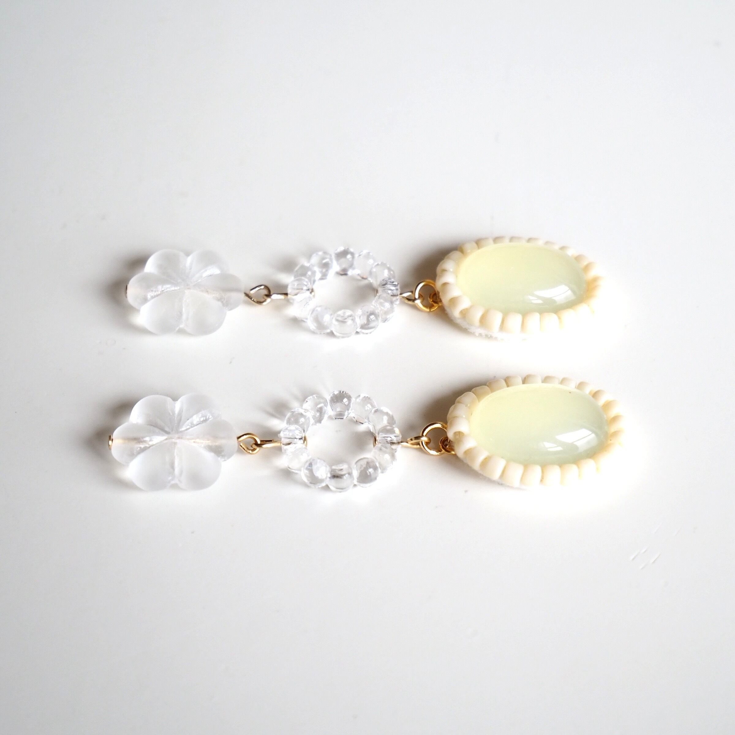 透明 クリア 氷 スケルトン 透け感 オフホワイト エクリュ 大振りイヤリング 大振りピアス プラスチック アクリル チェコビーズ 70年代 70s 70年代ファッション レトロポップ 昭和レトロ 古着 古着屋 レトロピアス レトロイヤリング レトロアクセサリー
