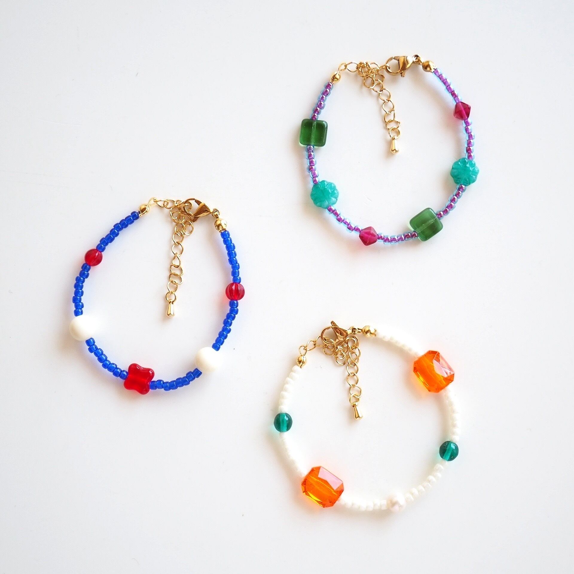 チェコビーズとドイツ製ビーズのビーズブレスレット(トリコロール)
