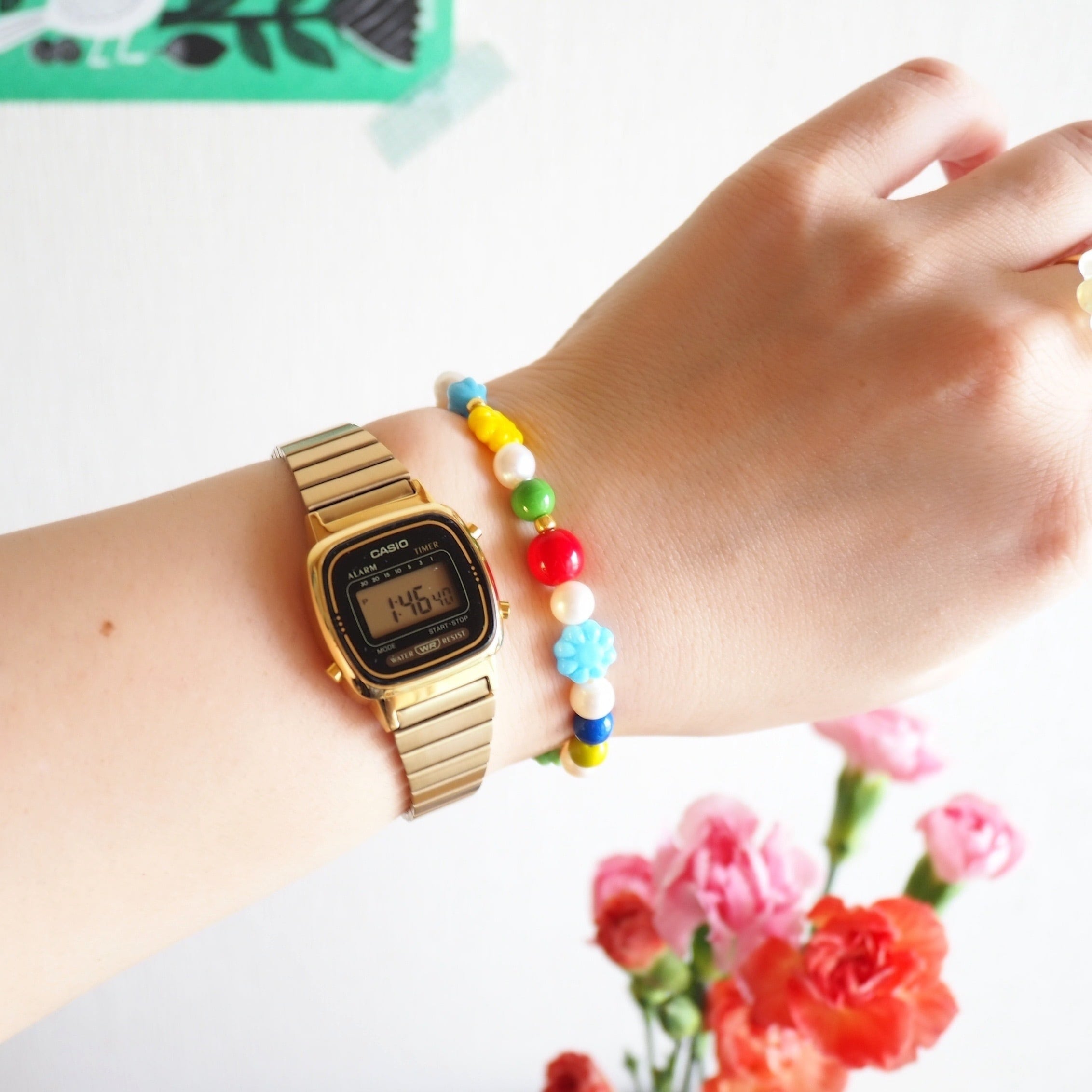 淡水パールとチェコビーズのビーズブレスレット(レインボー)no.2