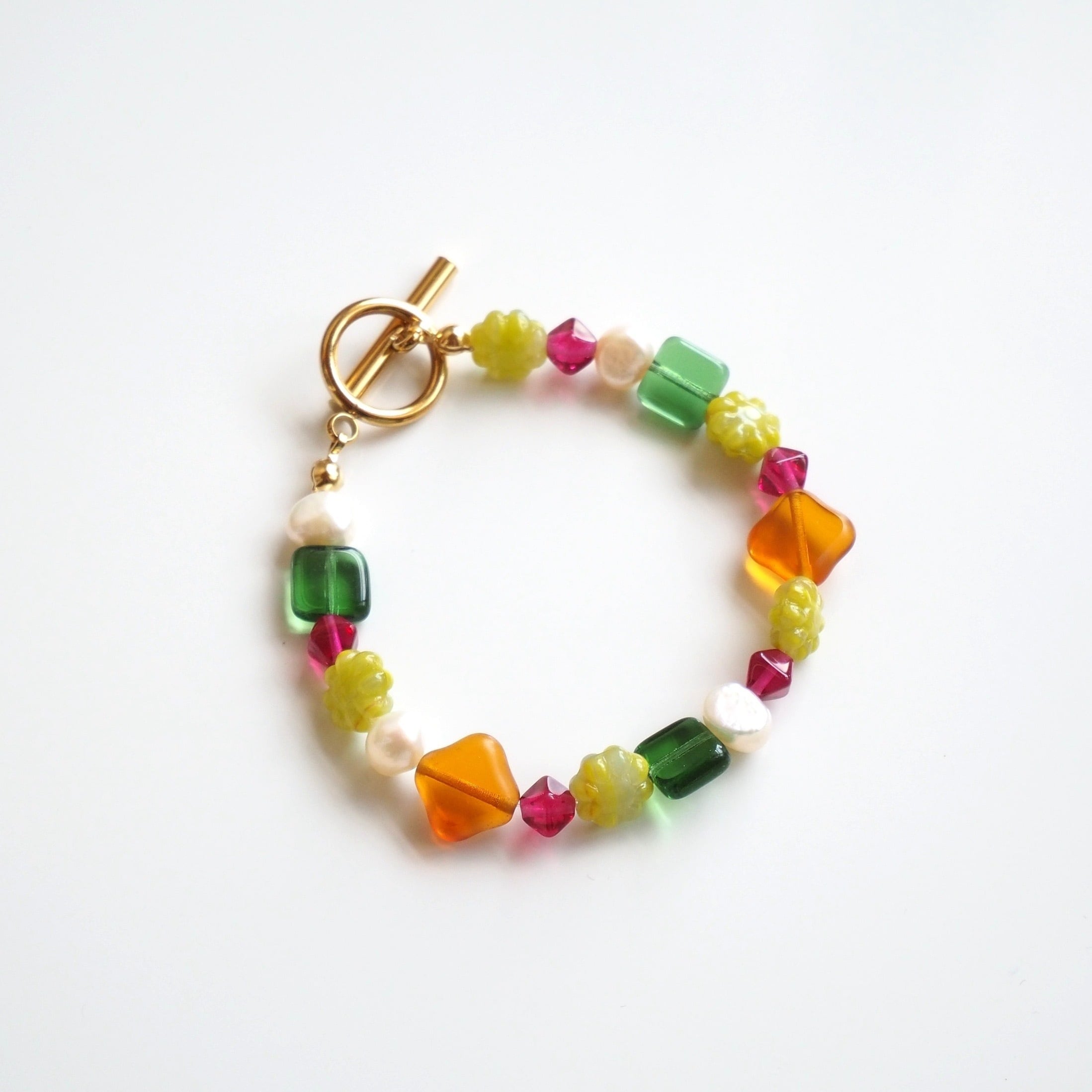 淡水パールとチェコビーズのビーズブレスレット(AUTUMN)no.1