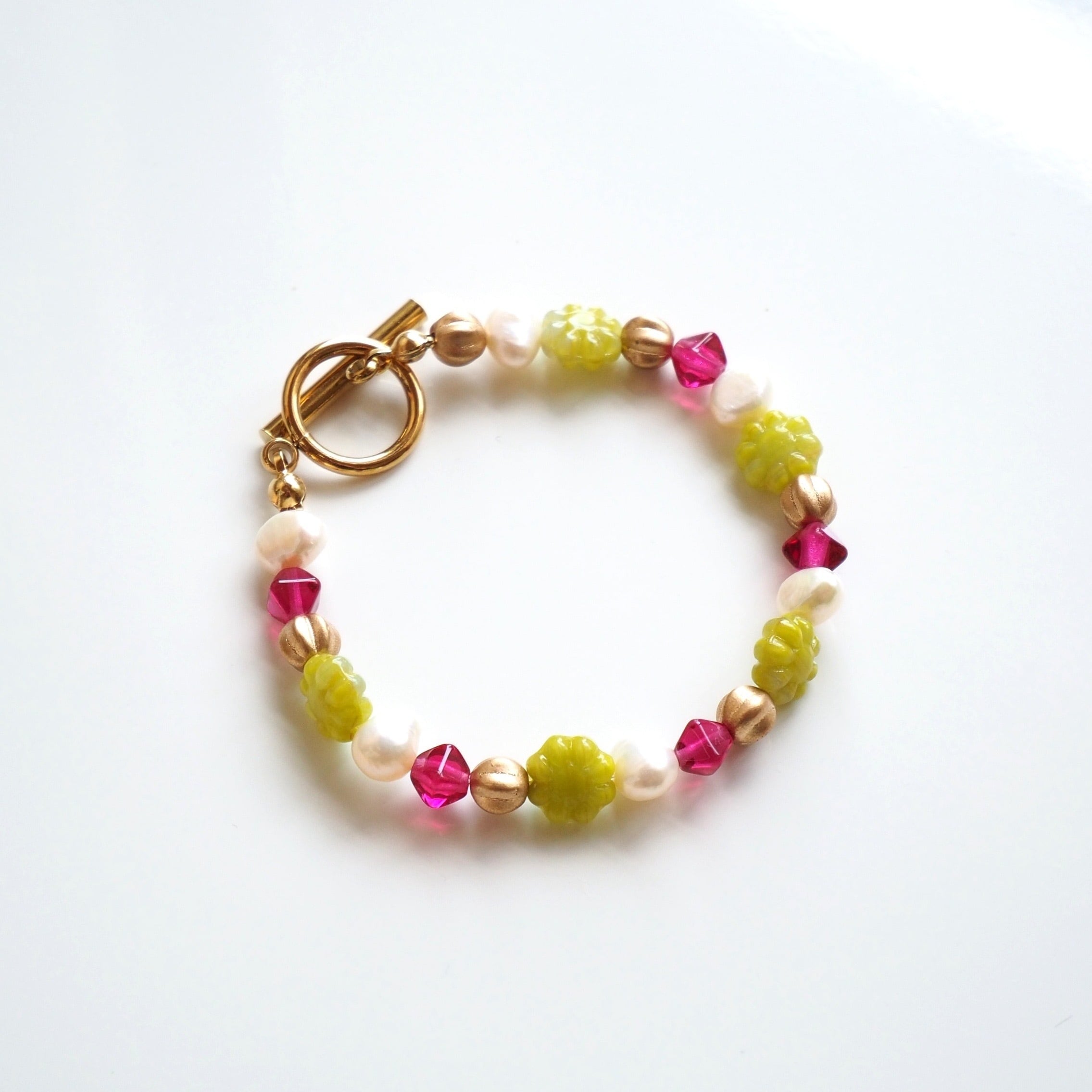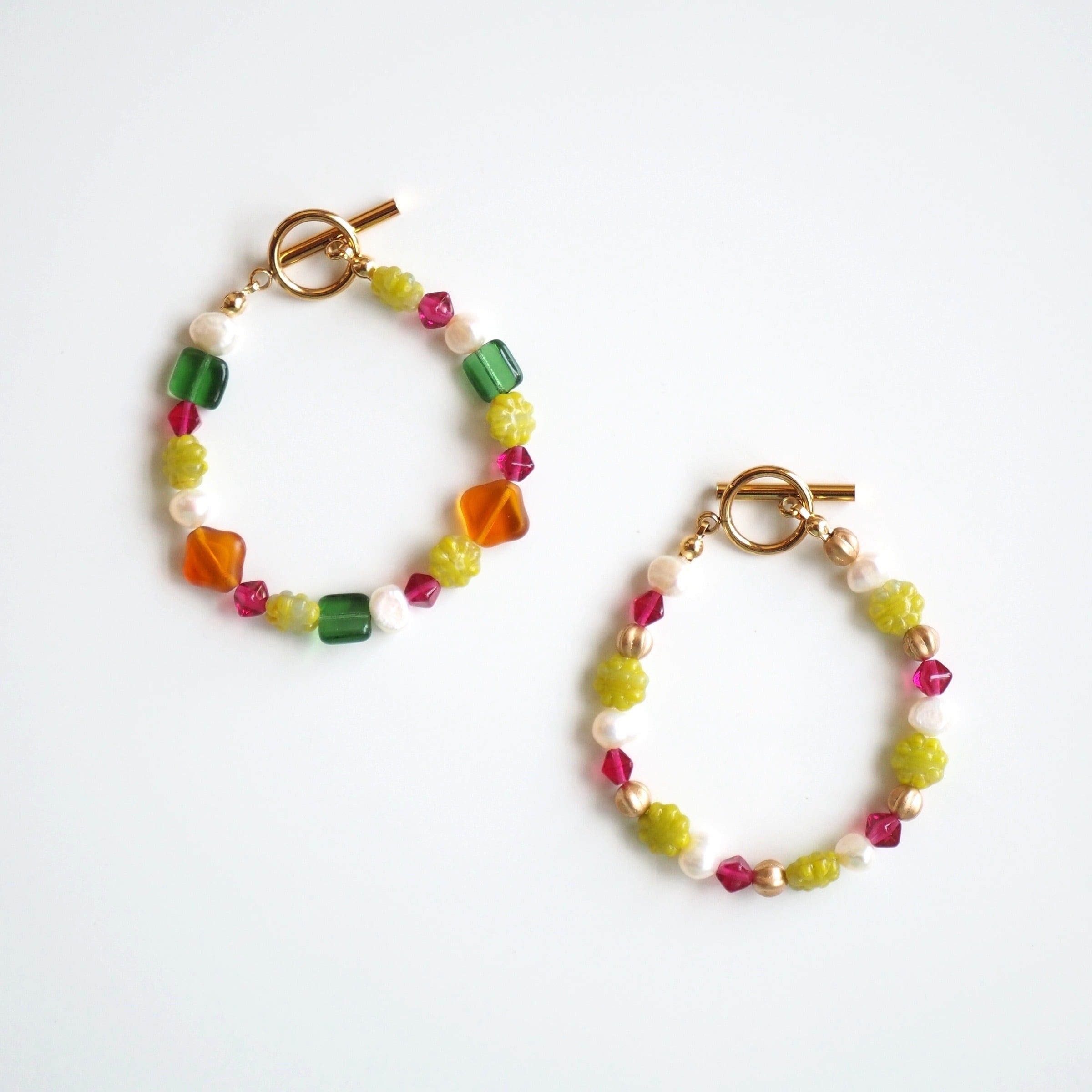 淡水パールとチェコビーズのビーズブレスレット(AUTUMN)no.2