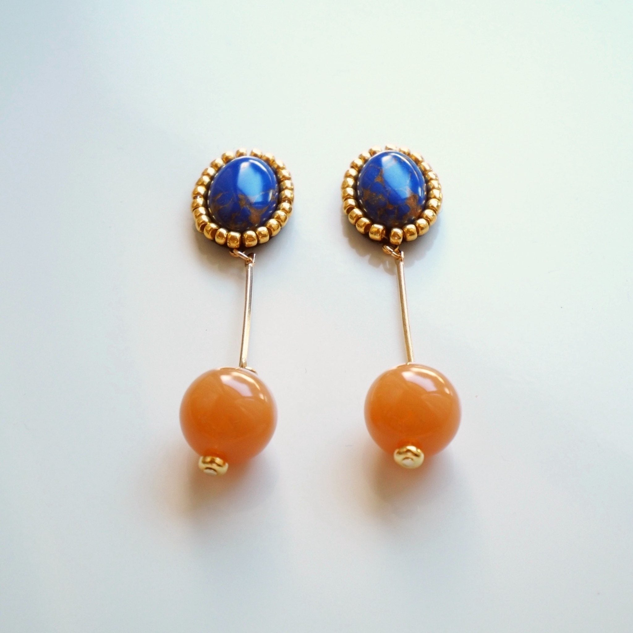 ブルー ゴールド ペールブラウン ベージュ ブラウン オーバルカボション 一粒ピアス 一粒イヤリング シンプル ゴールド 金 ゴールド 70年代 70s 70年代ファッション 80年代 80s 80年代ファッション シンプル レトロ レトロピアス レトロイヤリング レトロアクセサリー ビーズ刺繍 刺繍イヤリング 刺繍ピアス 古着屋