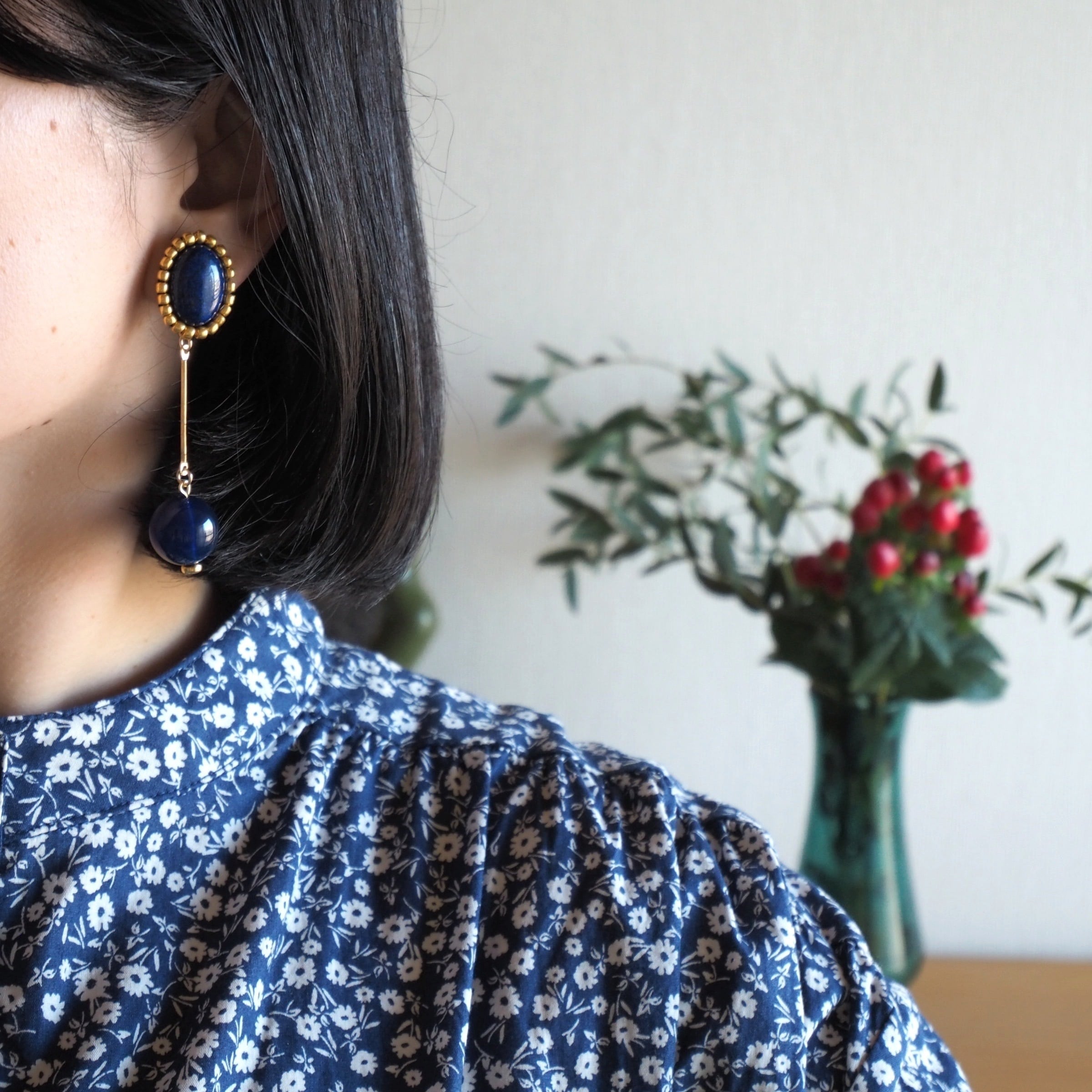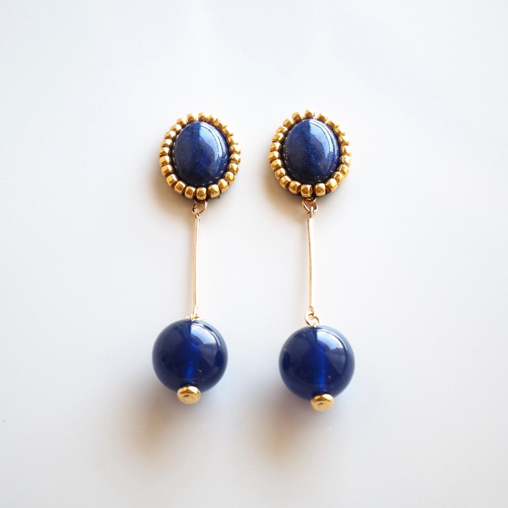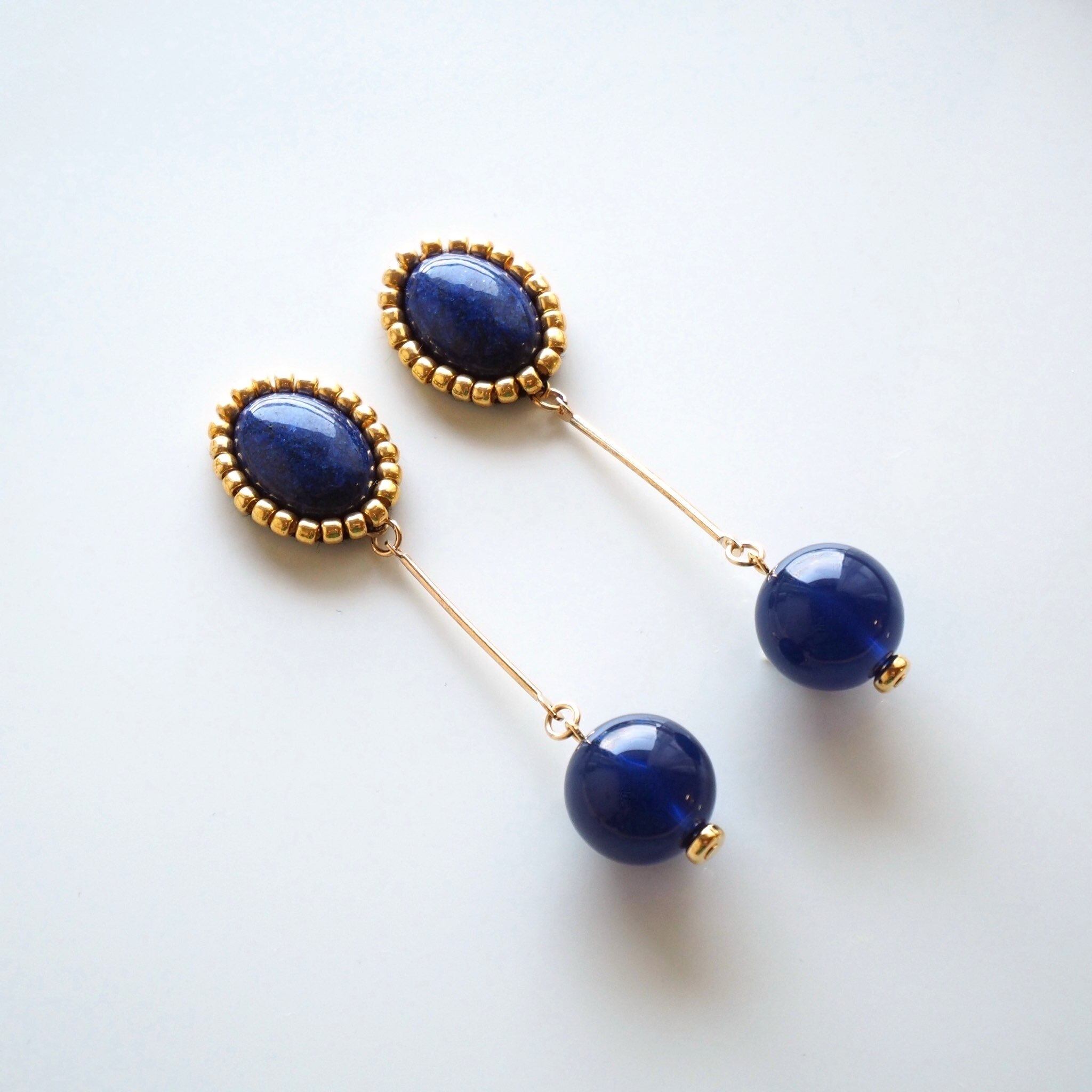 青 濃い青 濃紺 ネイビー ブルー ダークブルー オーバルカボション 一粒ピアス 一粒イヤリング シンプル ゴールド 金 ゴールド 70年代 70s 70年代ファッション 80年代 80s 80年代ファッション シンプル レトロ レトロピアス レトロイヤリング レトロアクセサリー ビーズ刺繍 刺繍イヤリング 刺繍ピアス 古着屋