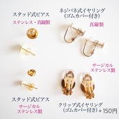 モザイクカボションとラウンドビーズのピアス/イヤリング(パープル×ペールブラウン)