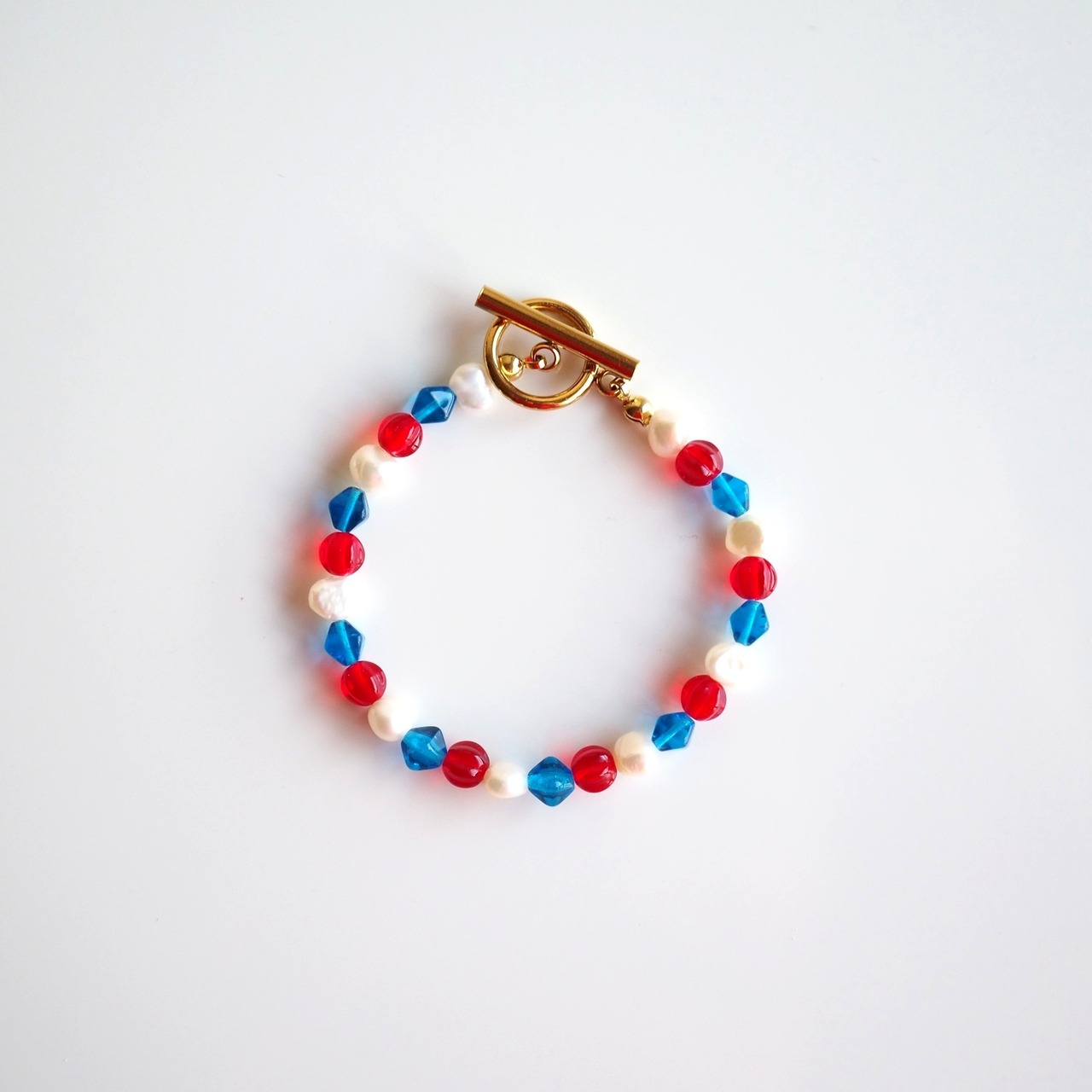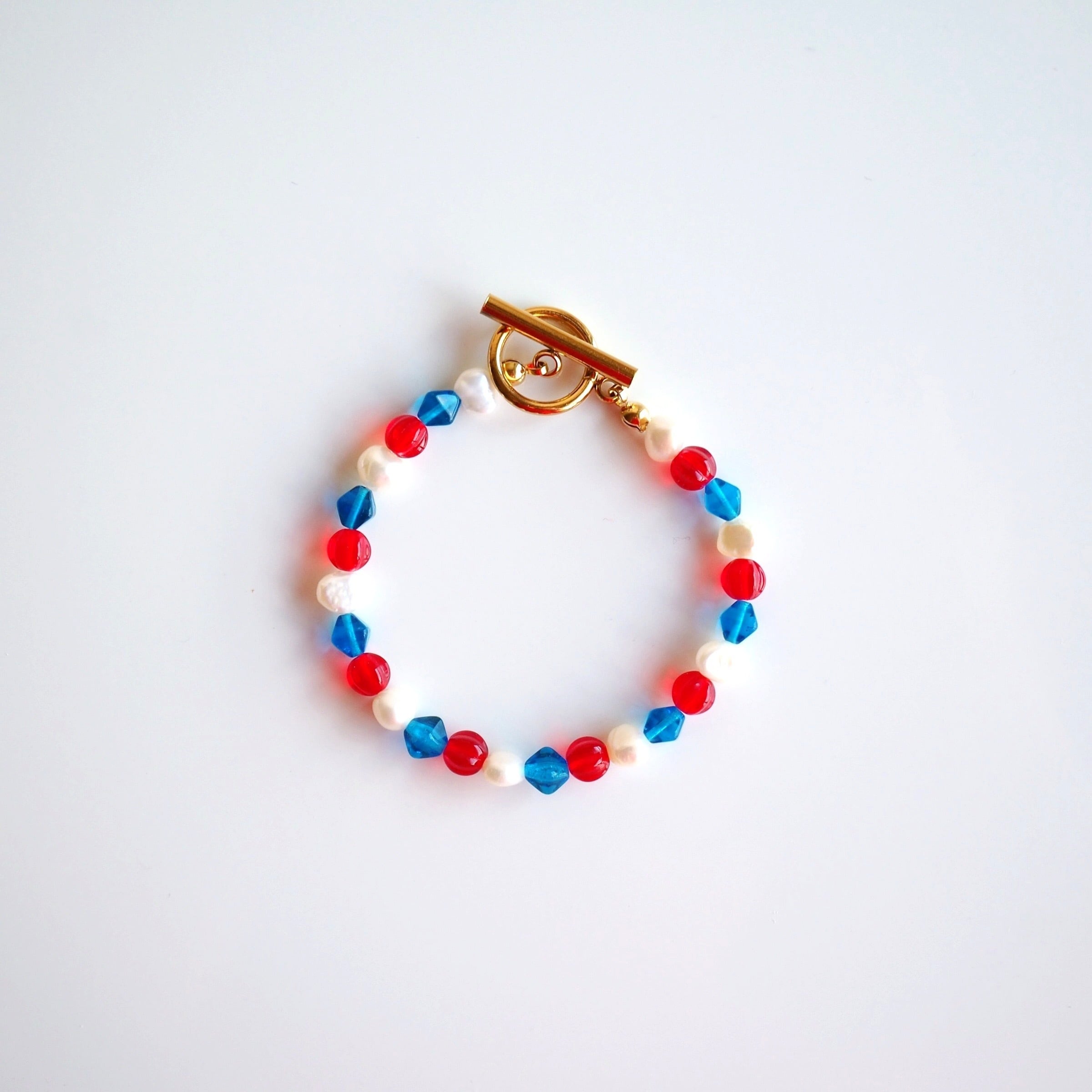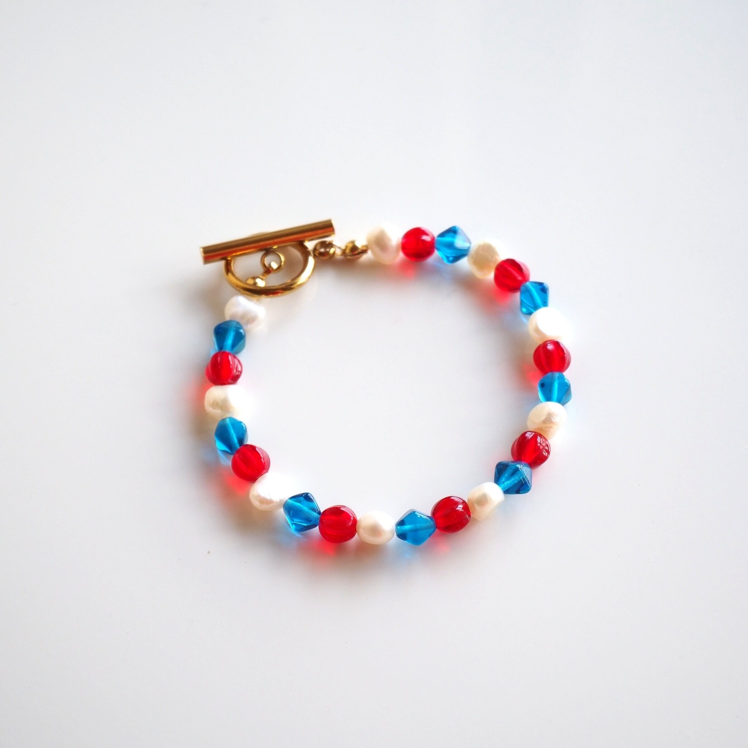チェコビーズと淡水パールのブレスレット(トリコロール)