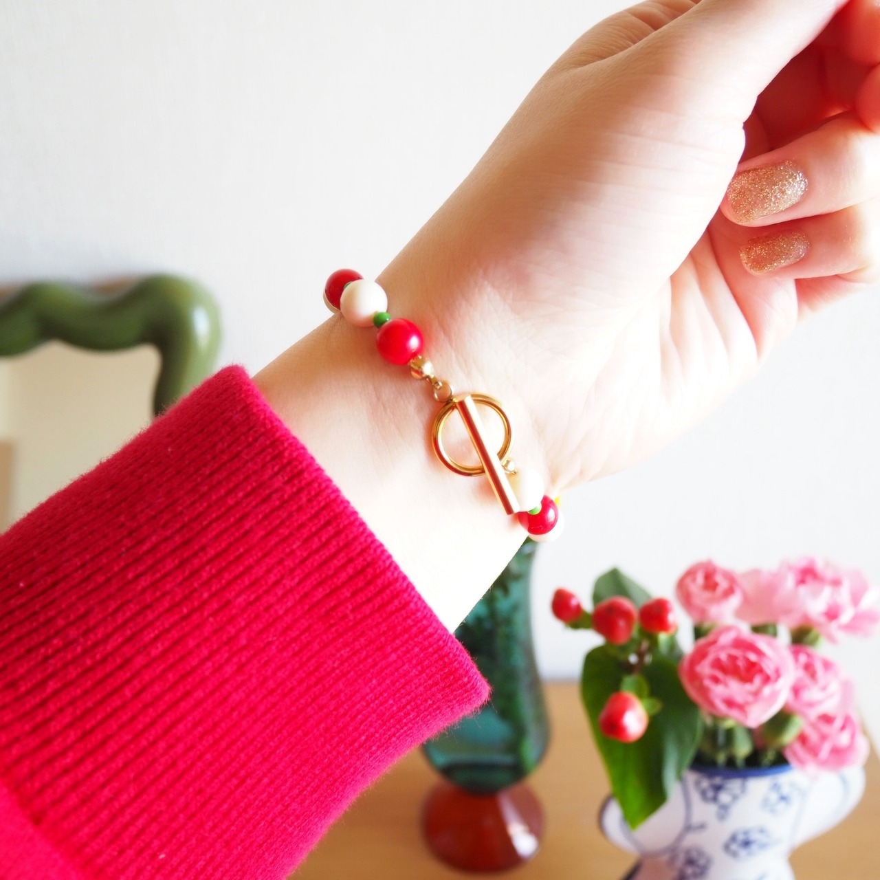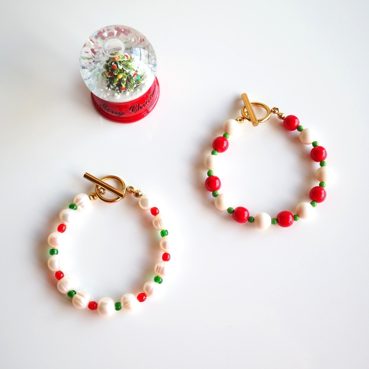 チェコビーズとドイツビーズのビーズブレスレット(CHRISTMAS)