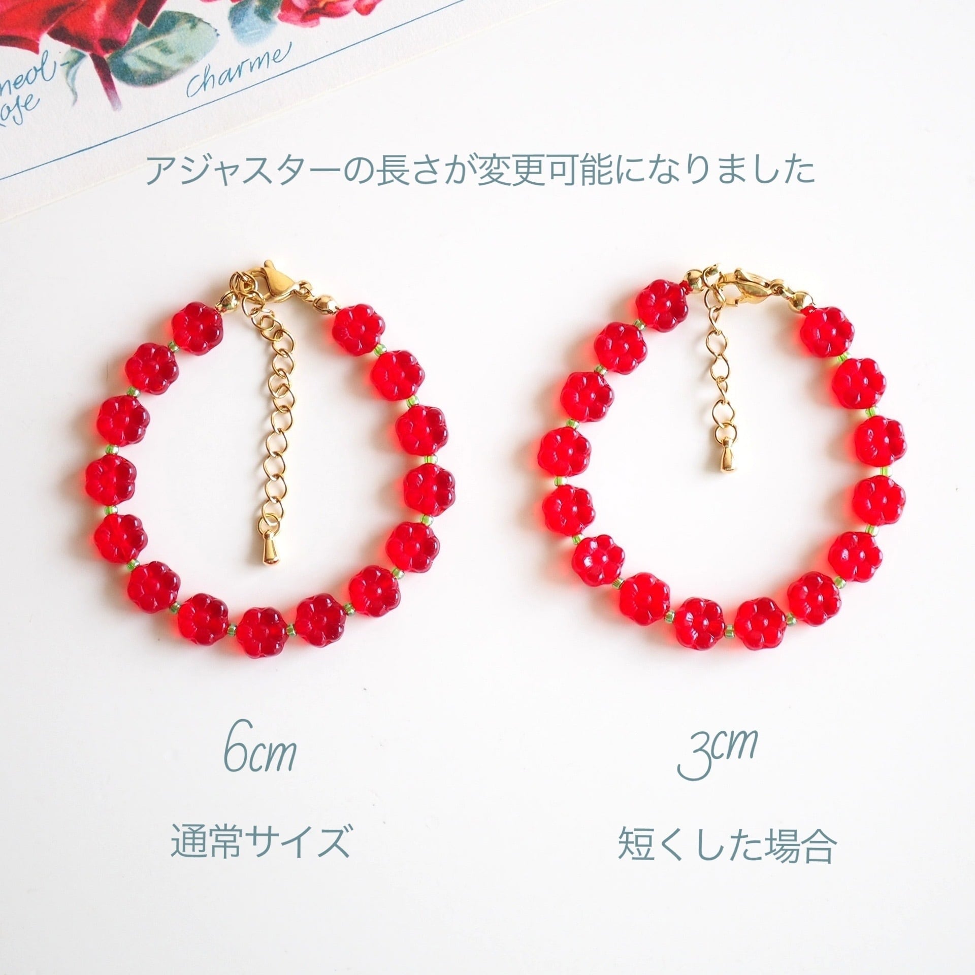 ホワイトのフラワービーズを合わせました。