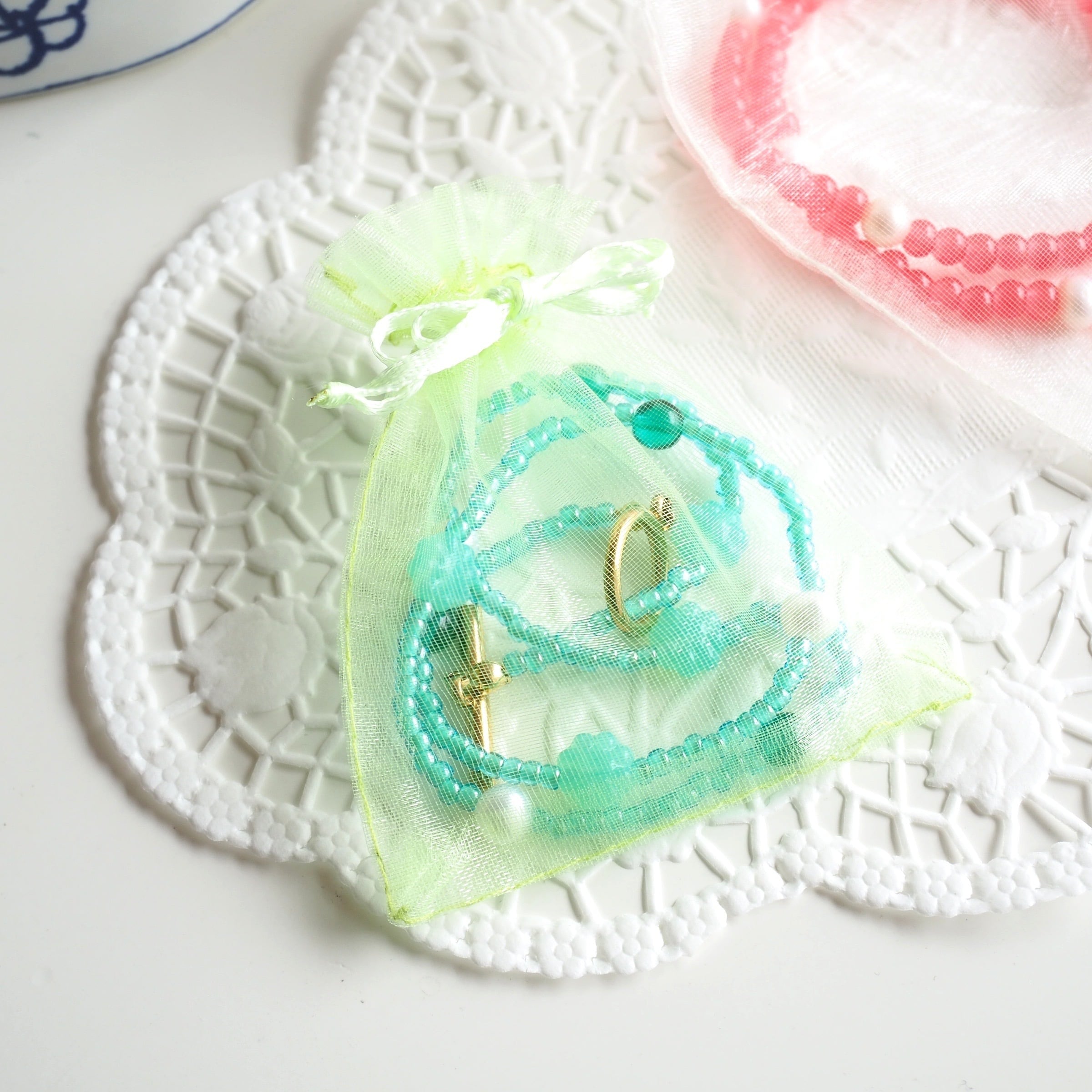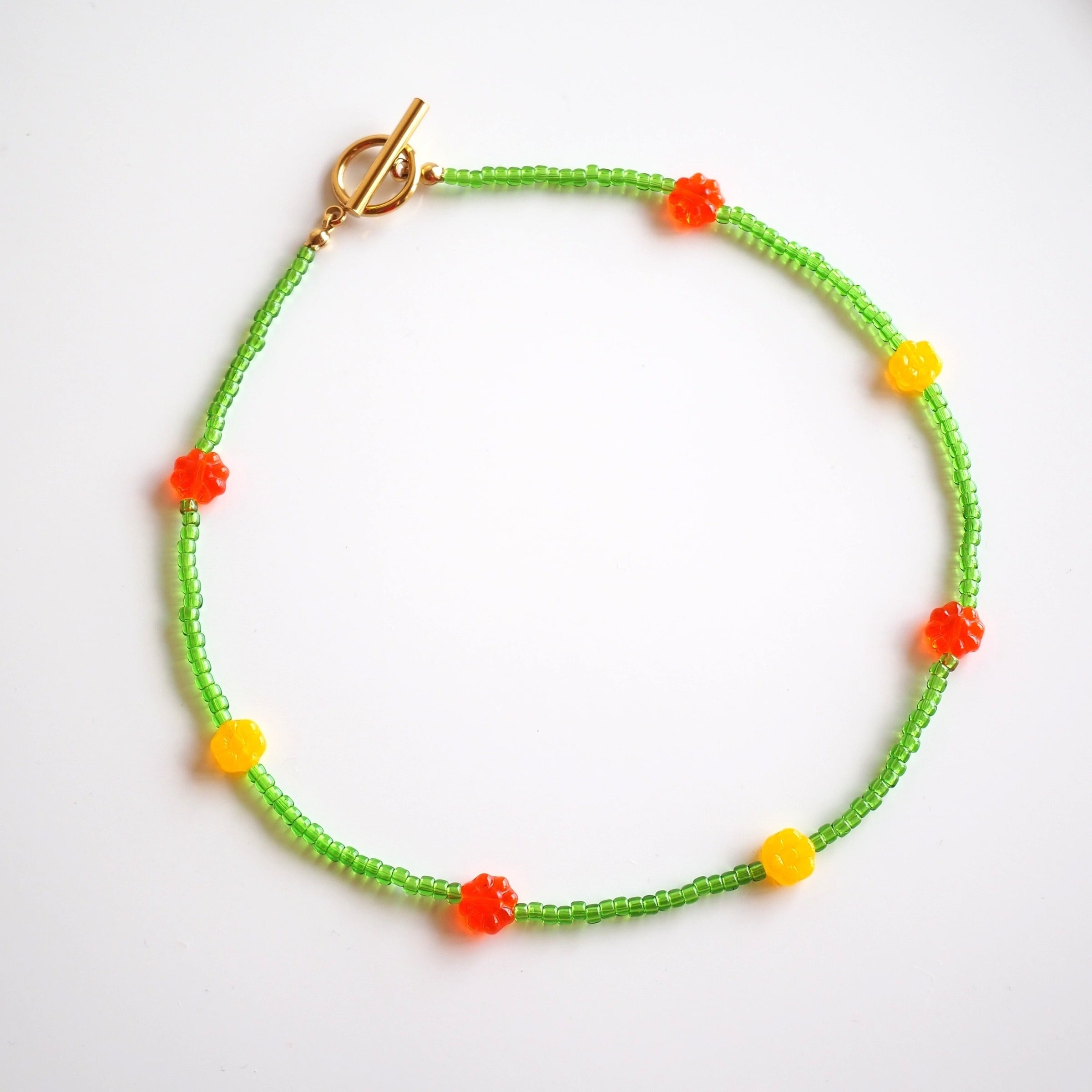 グリーンの国産シードビーズに、オレンジ・イエローの