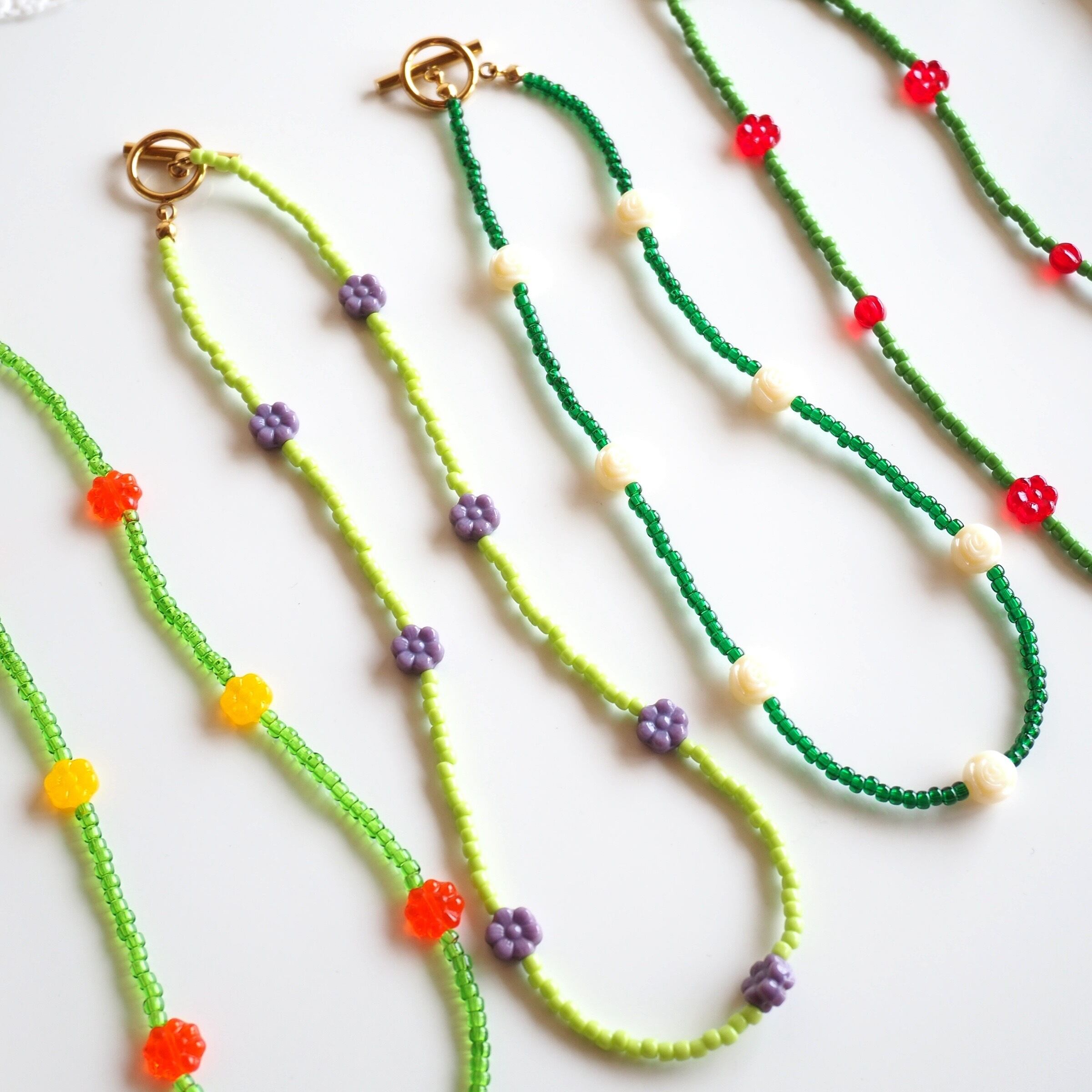 フラワービーズチョーカーネックレス(SPRING) no.1