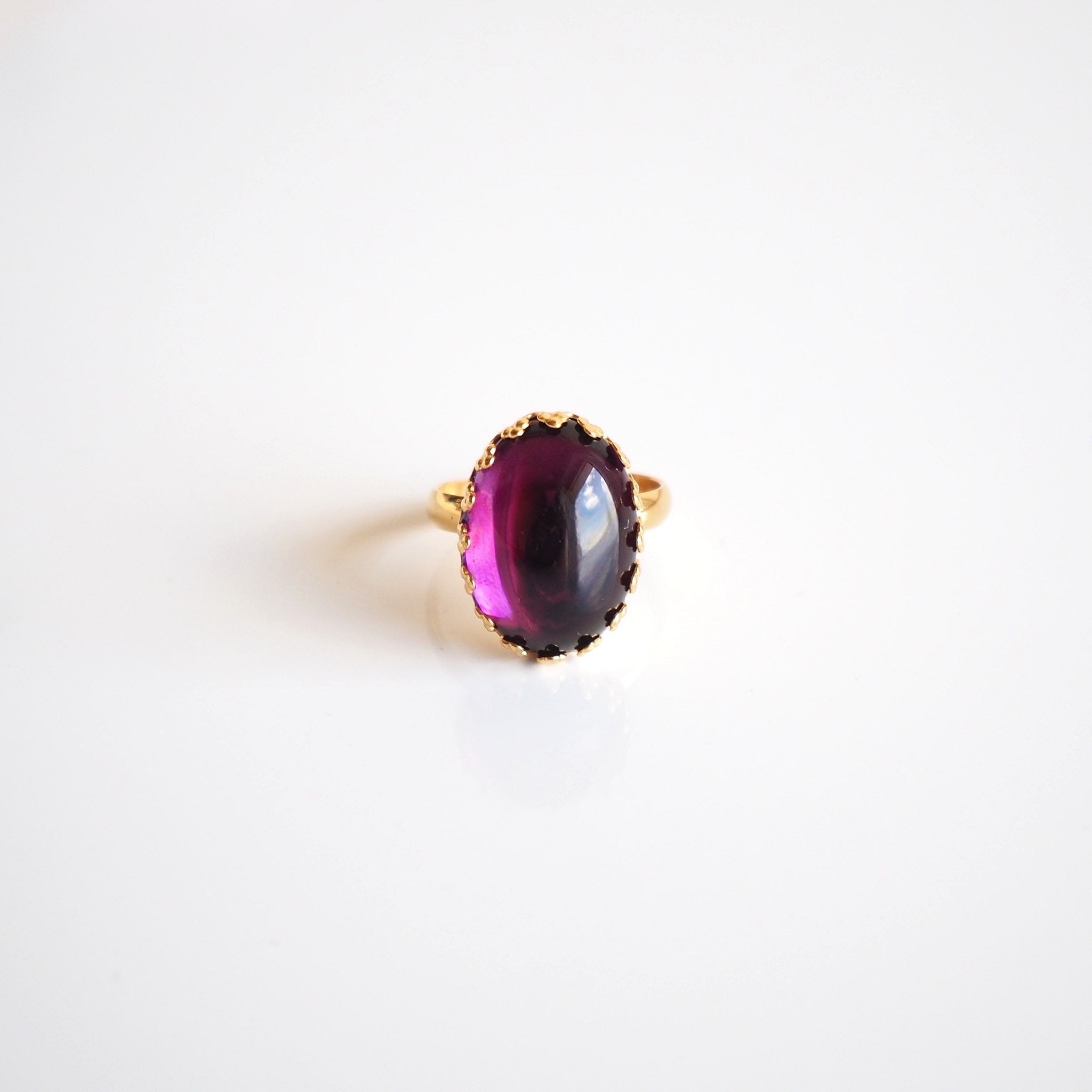 リング カボションリング オーバルカボション ゴールド チェコガラス パープル