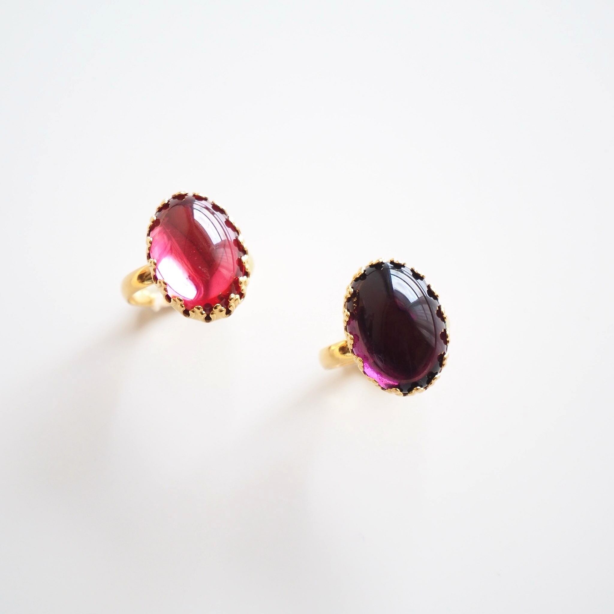 オーバルカボションリング(チェコガラス パープル)