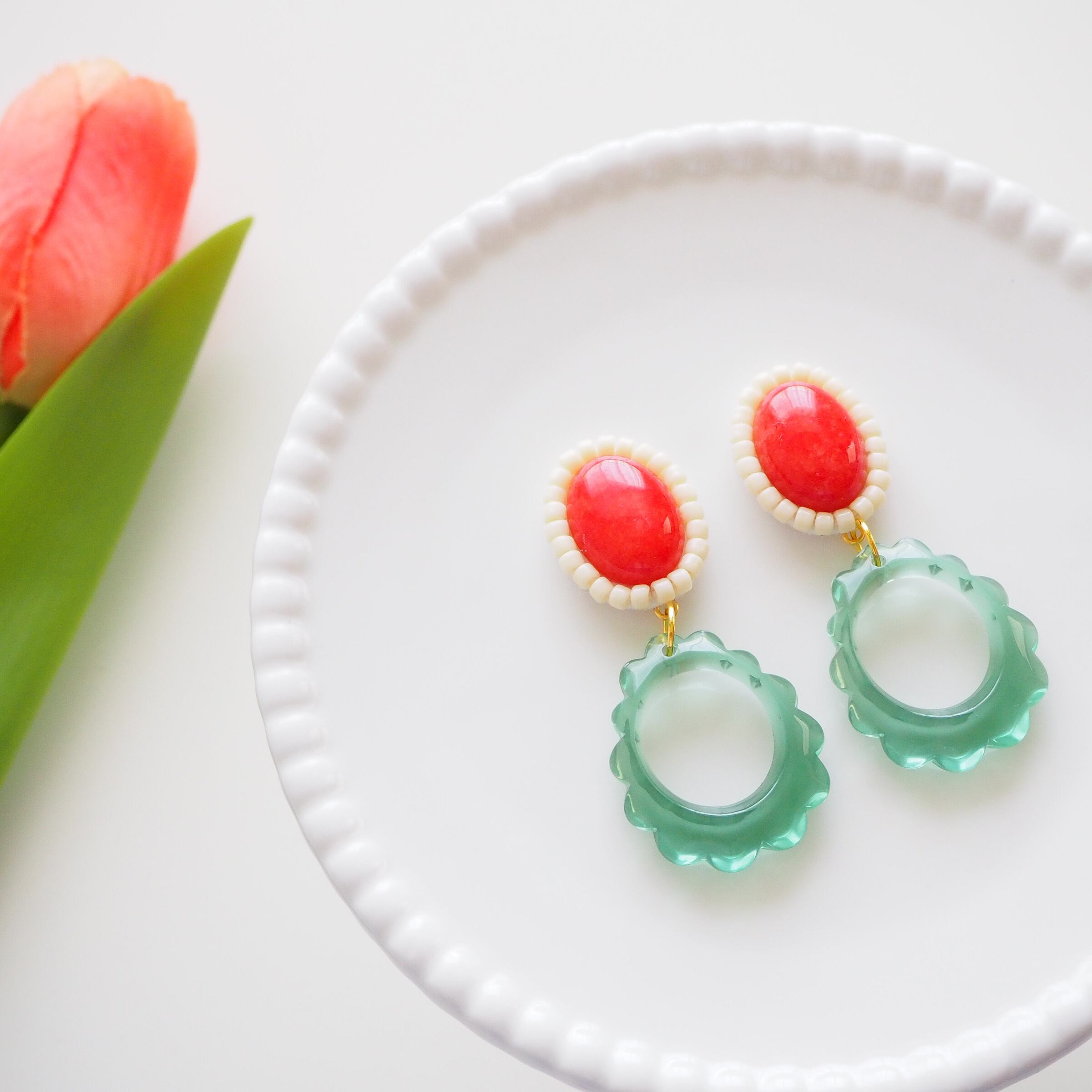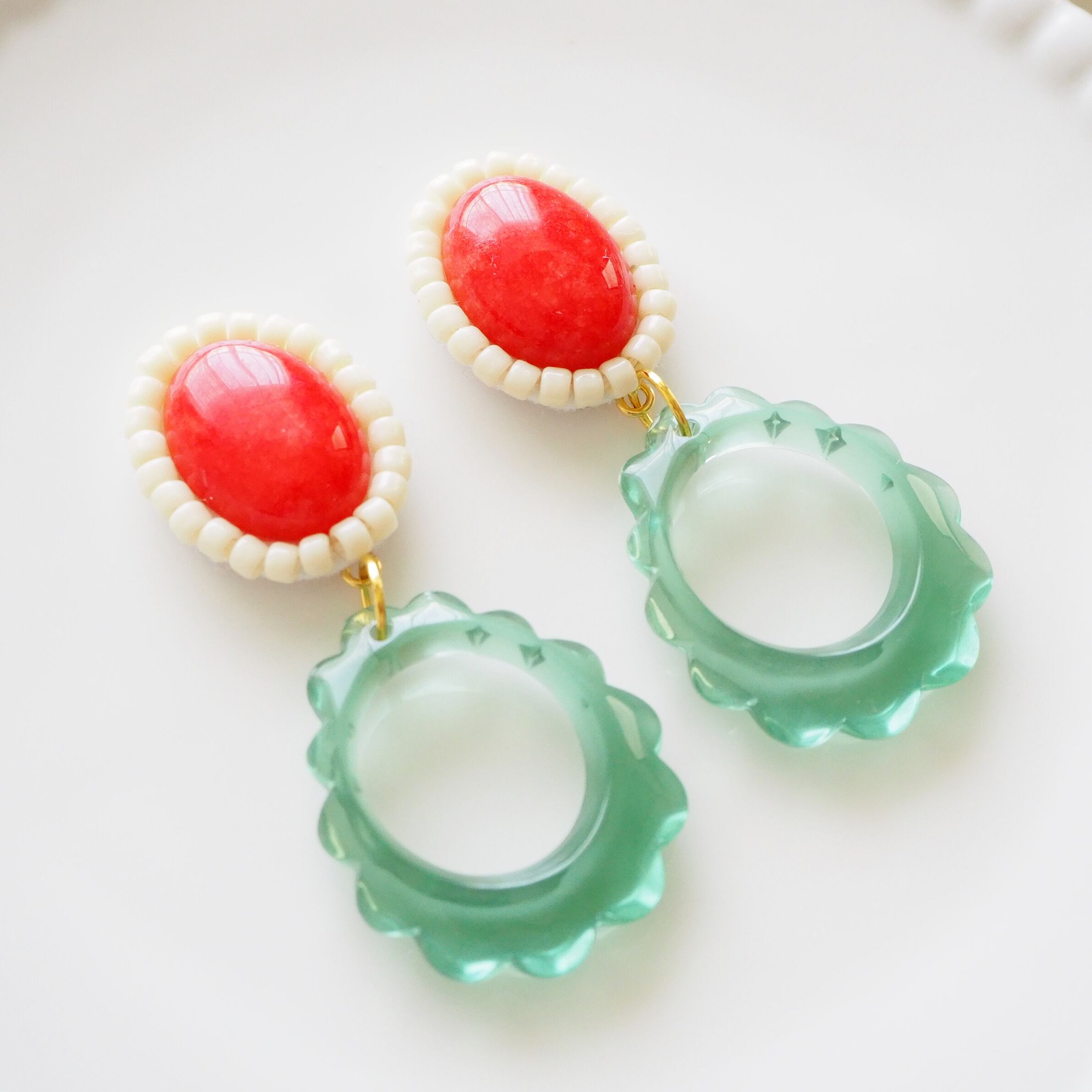 【廃盤】グミみたいなカボションのピアス/イヤリング(オレンジ×ミントグリーン)