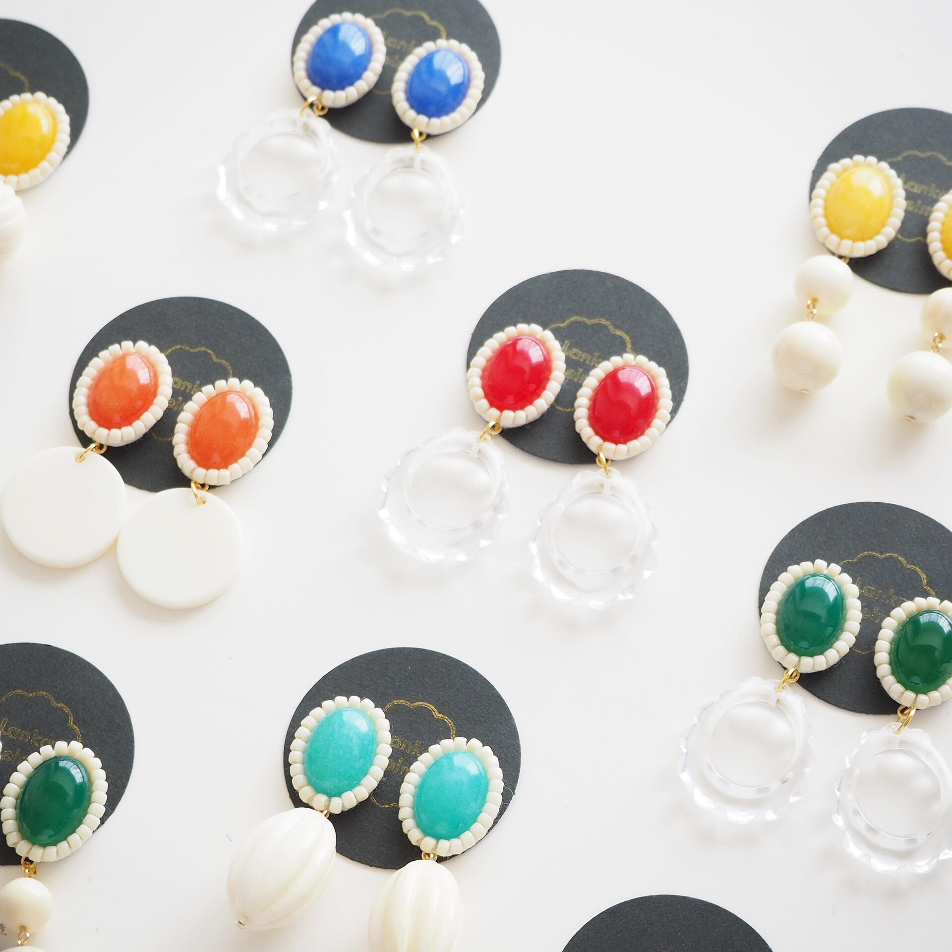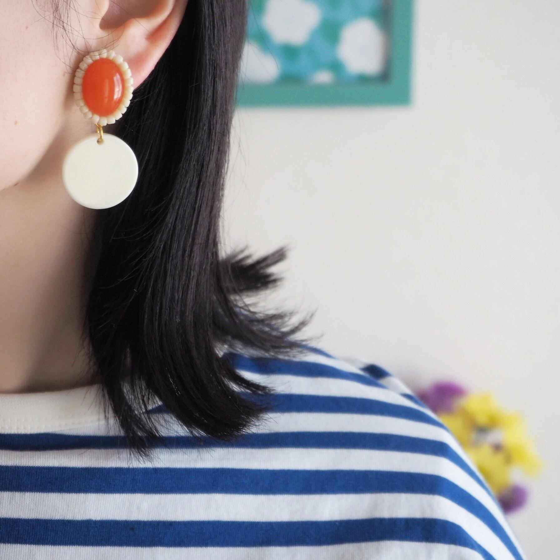 グミみたいなカボションとラウンドチャームのイヤリング/ピアス(オレンジ×オフホワイト)