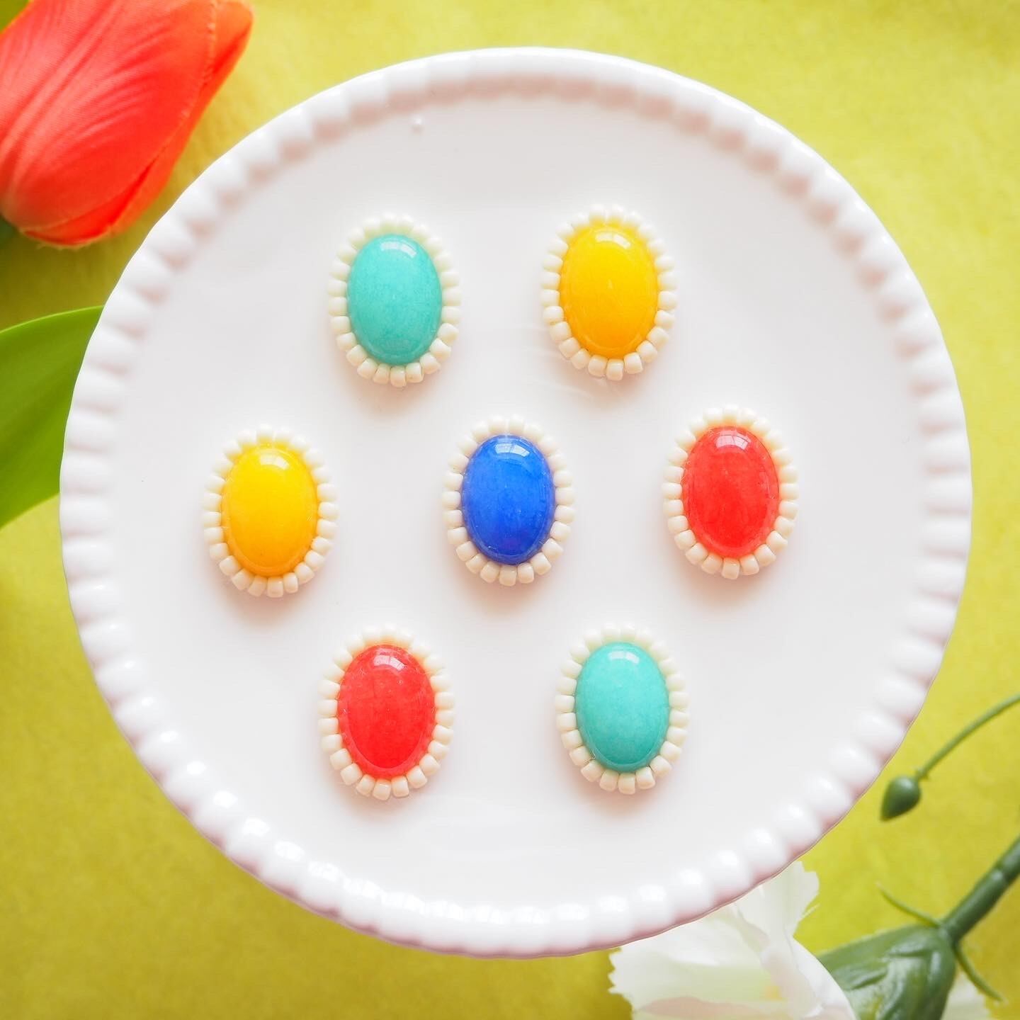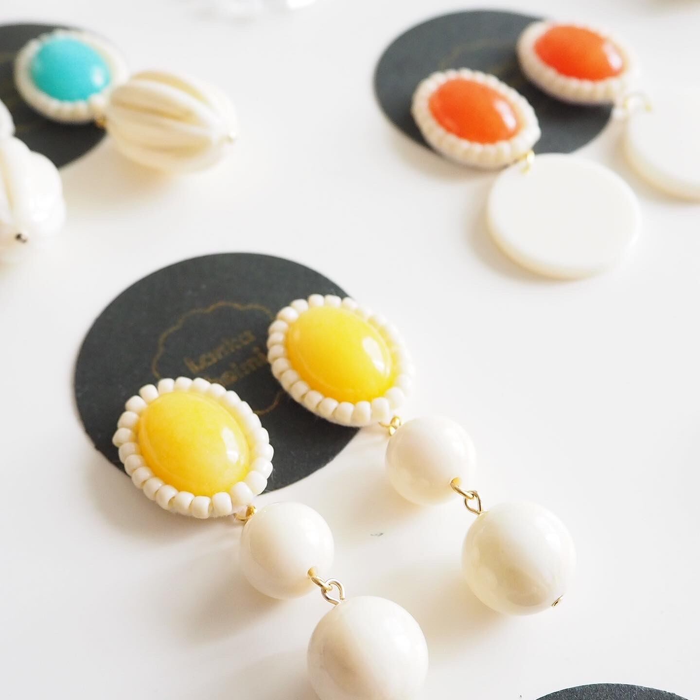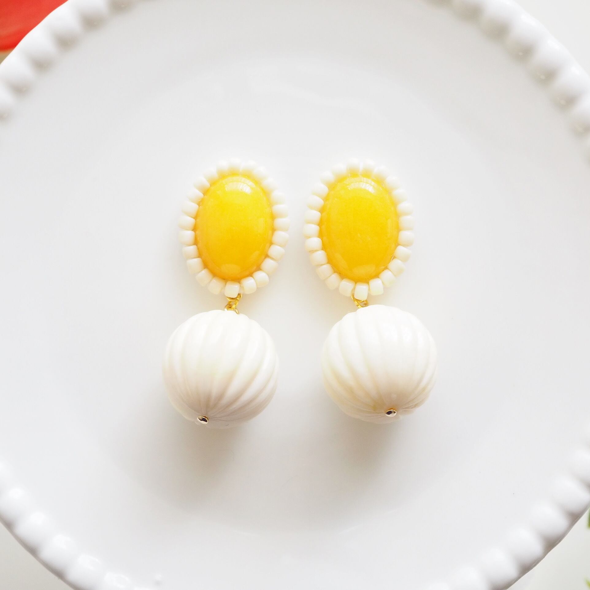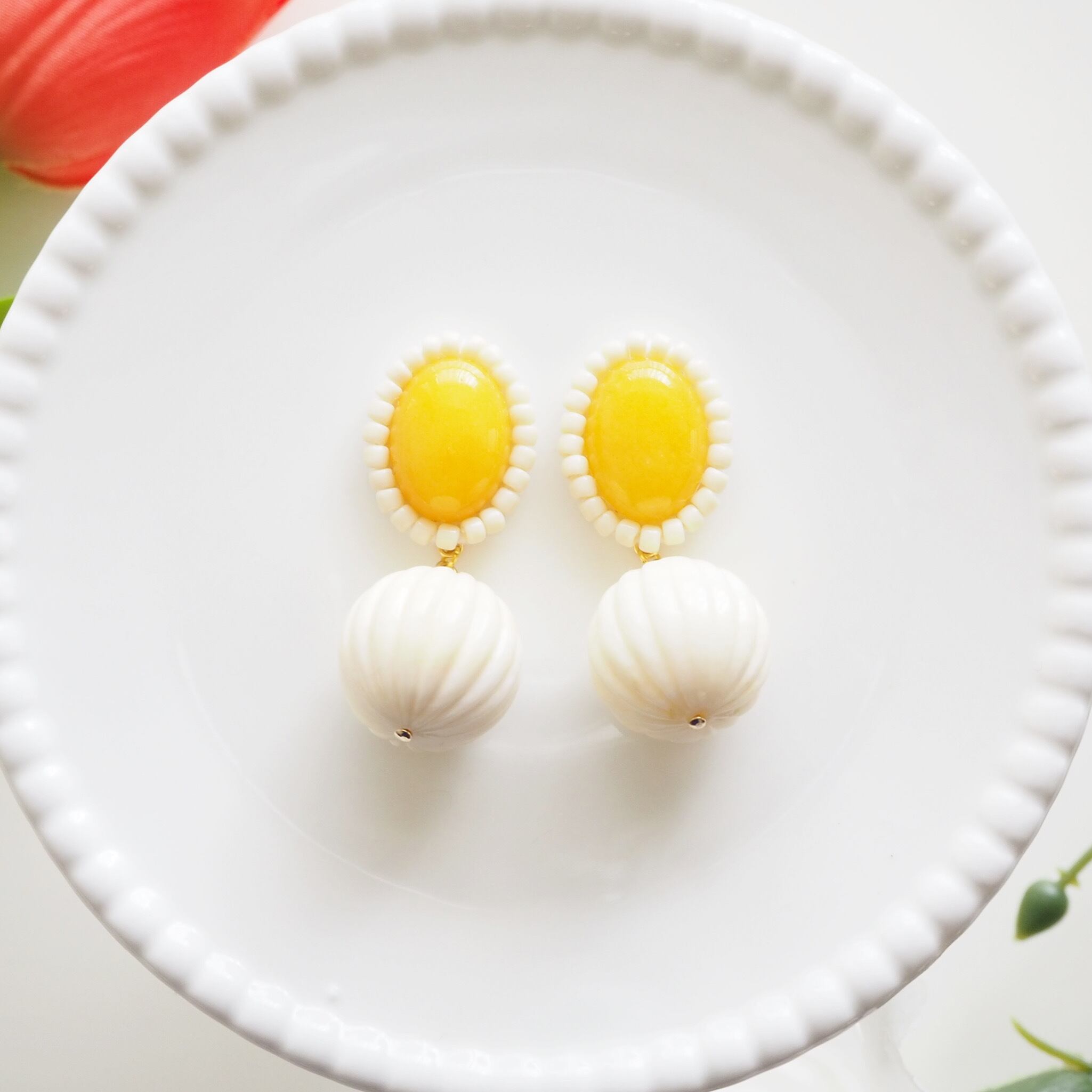 グミみたいなカボションのレトロなピアス/イヤリング(イエロー×オフホワイト)no.1