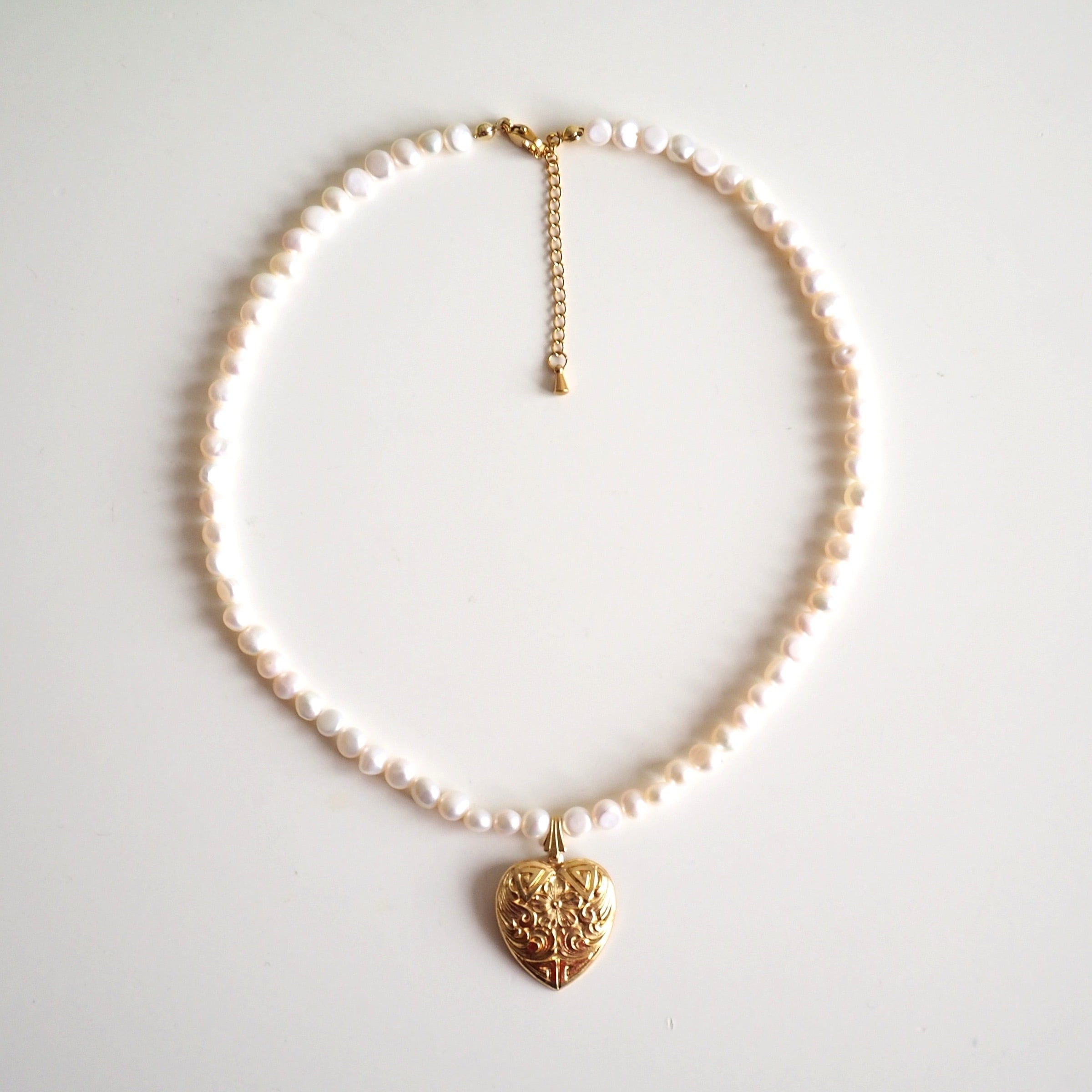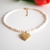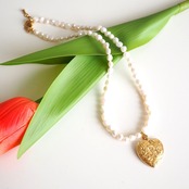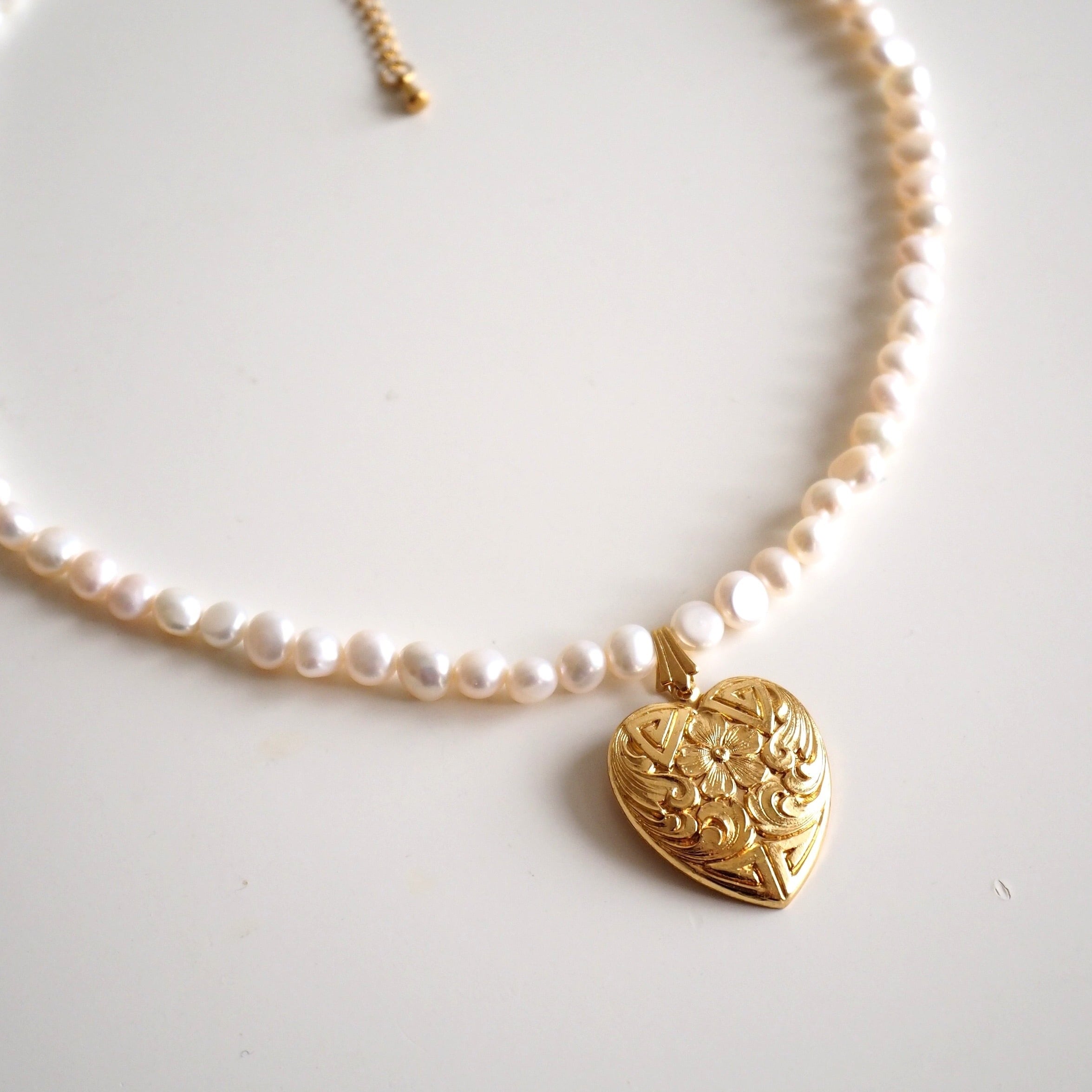 【Renewal】ハートの真鍮チャームと淡水パールのネックレス