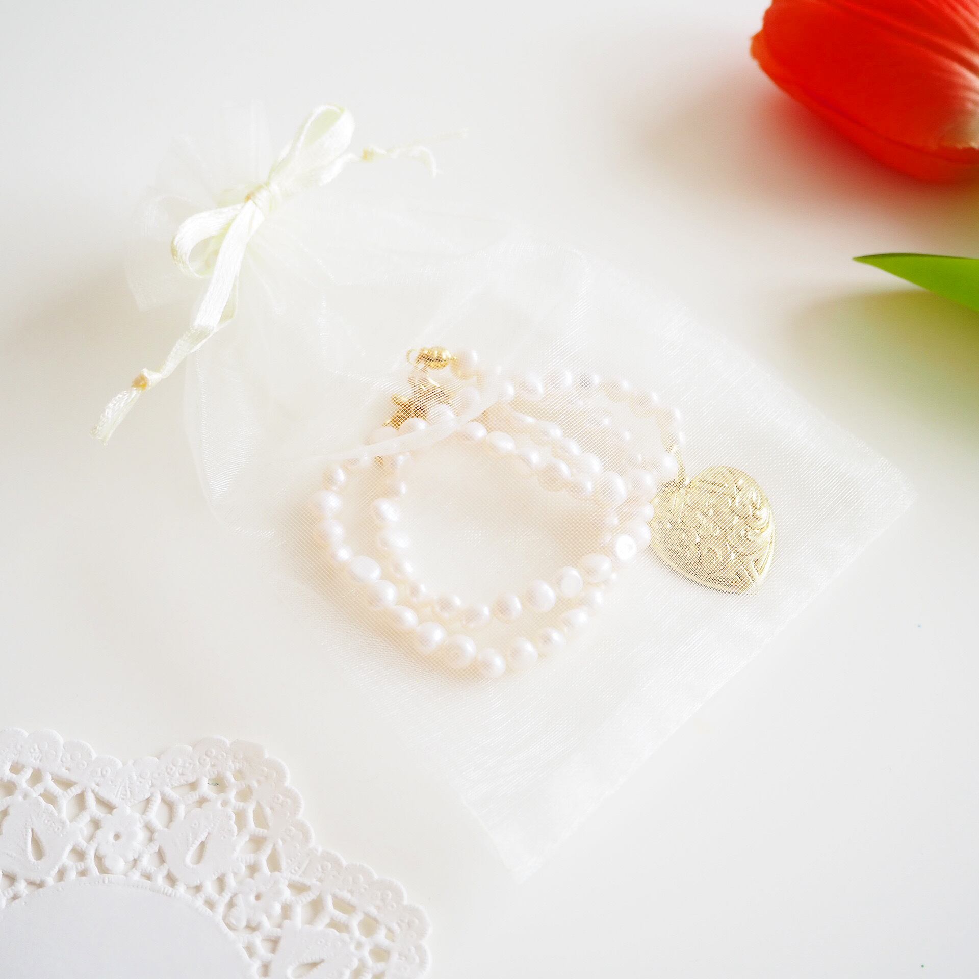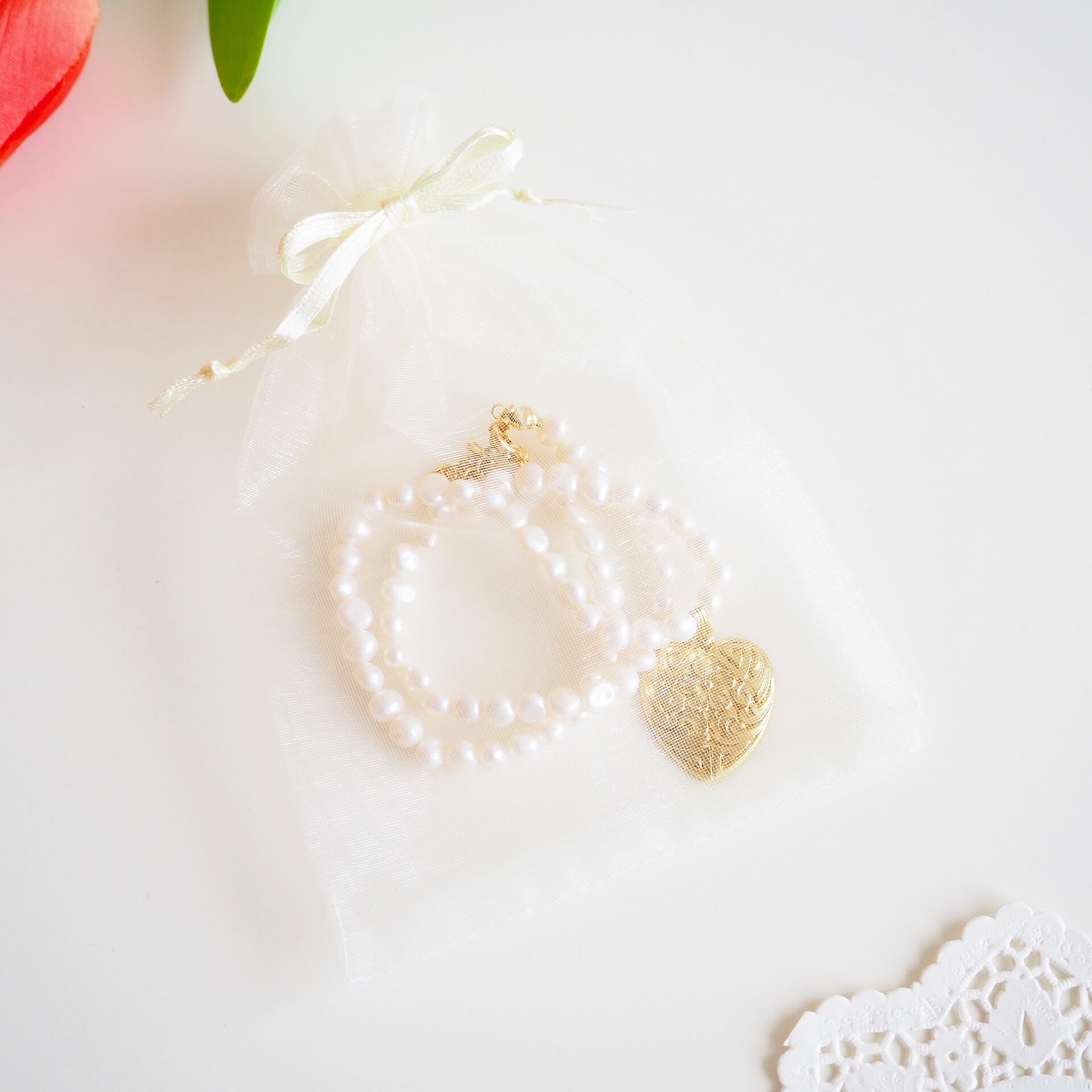 オーガンジーバッグにてお届けします。