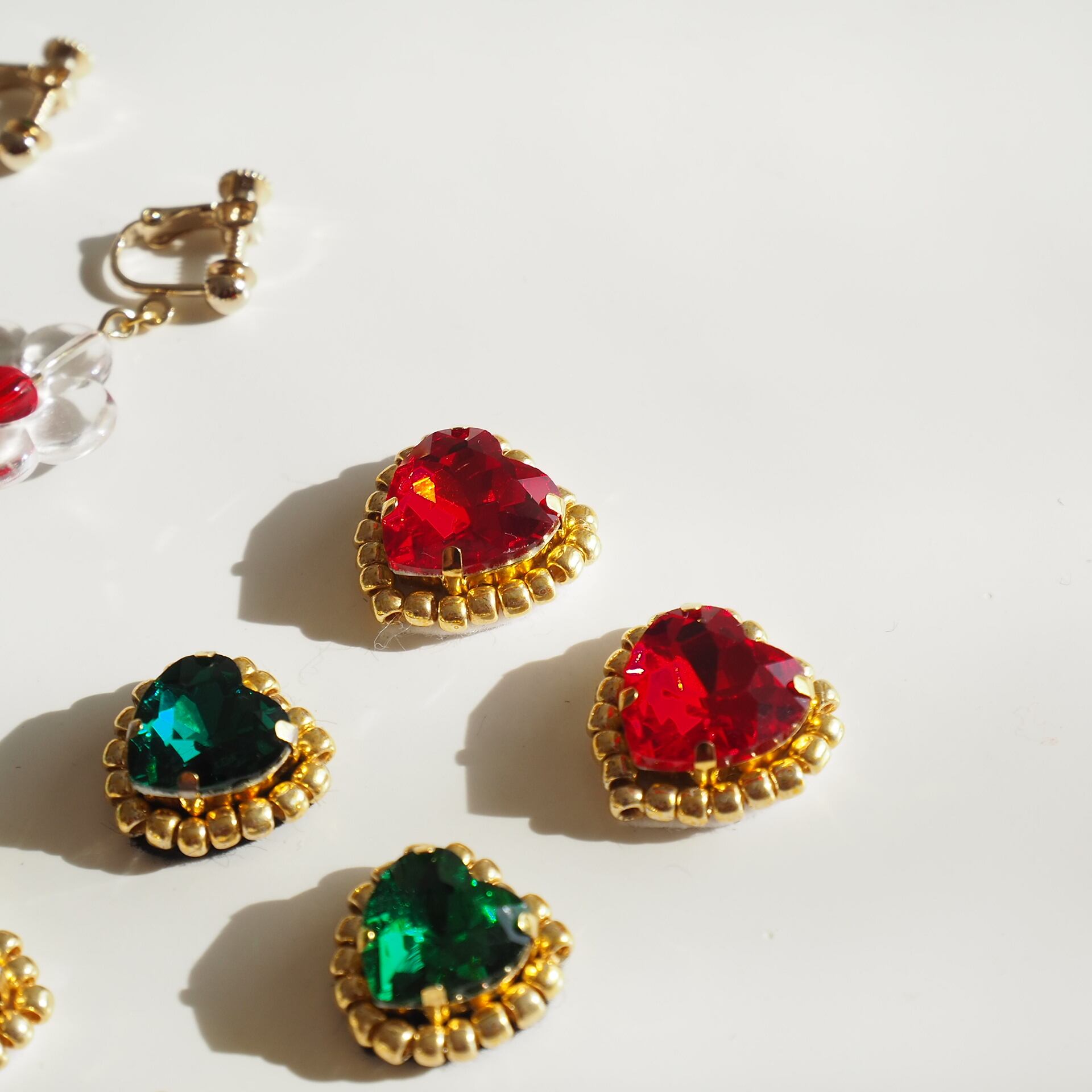 赤 レッド 金 ゴールド 真鍮 カボション ビジュー ハート ハートモチーフ 80年代 80s 80年代ファッション レトロピアス レトロイヤリング レトロアクセサリー ビーズ刺繍 刺繍イヤリング 刺繍ピアス ヴィンテージ ヴィンテージアクセサリー パールピアス パールイヤリング パールアクセサリー コスチュームジュエリー