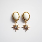 チェコガラスカボションと星のチャームのピアス/イヤリング(オフホワイト)