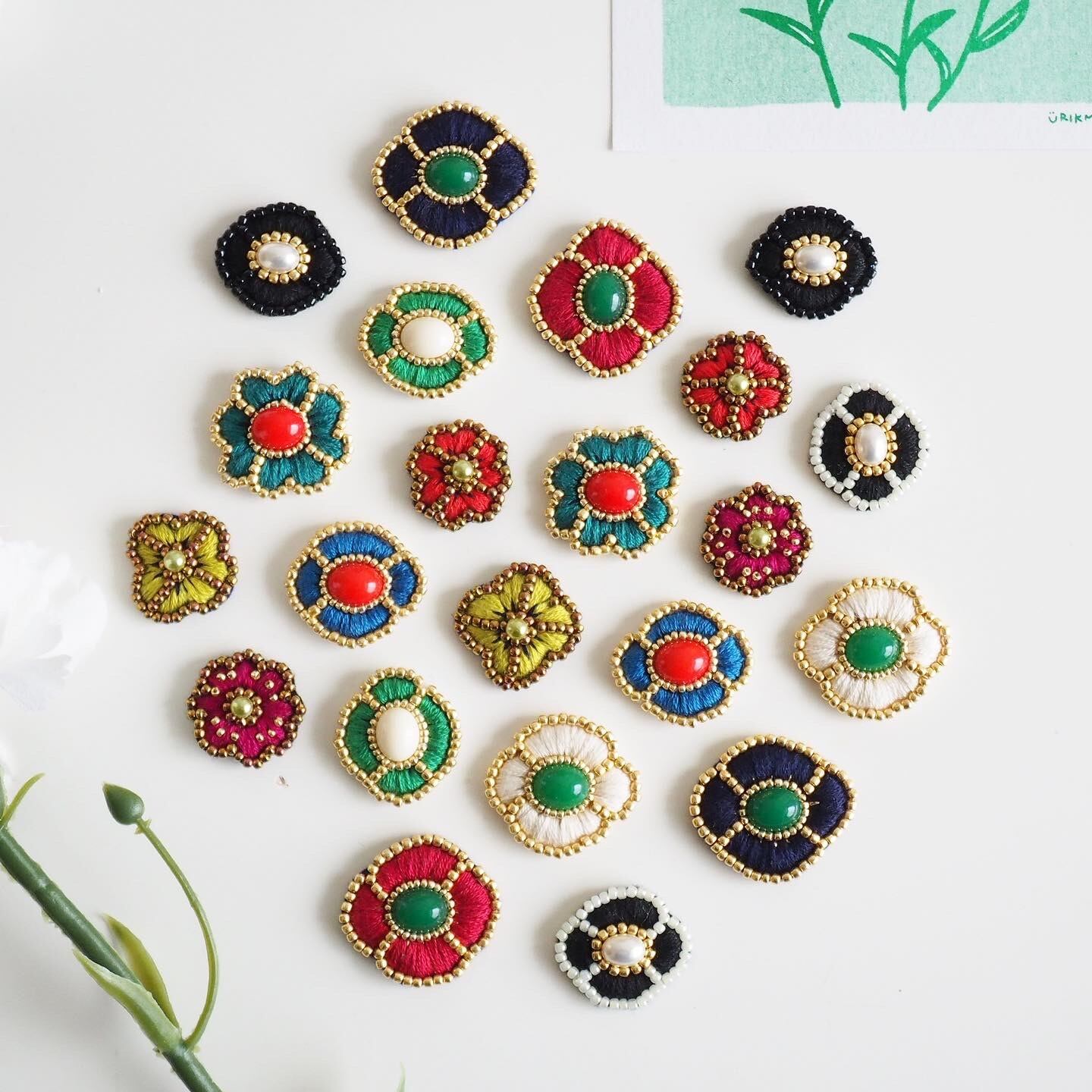 フラワーモチーフの刺繍ピアス&イヤリングです。