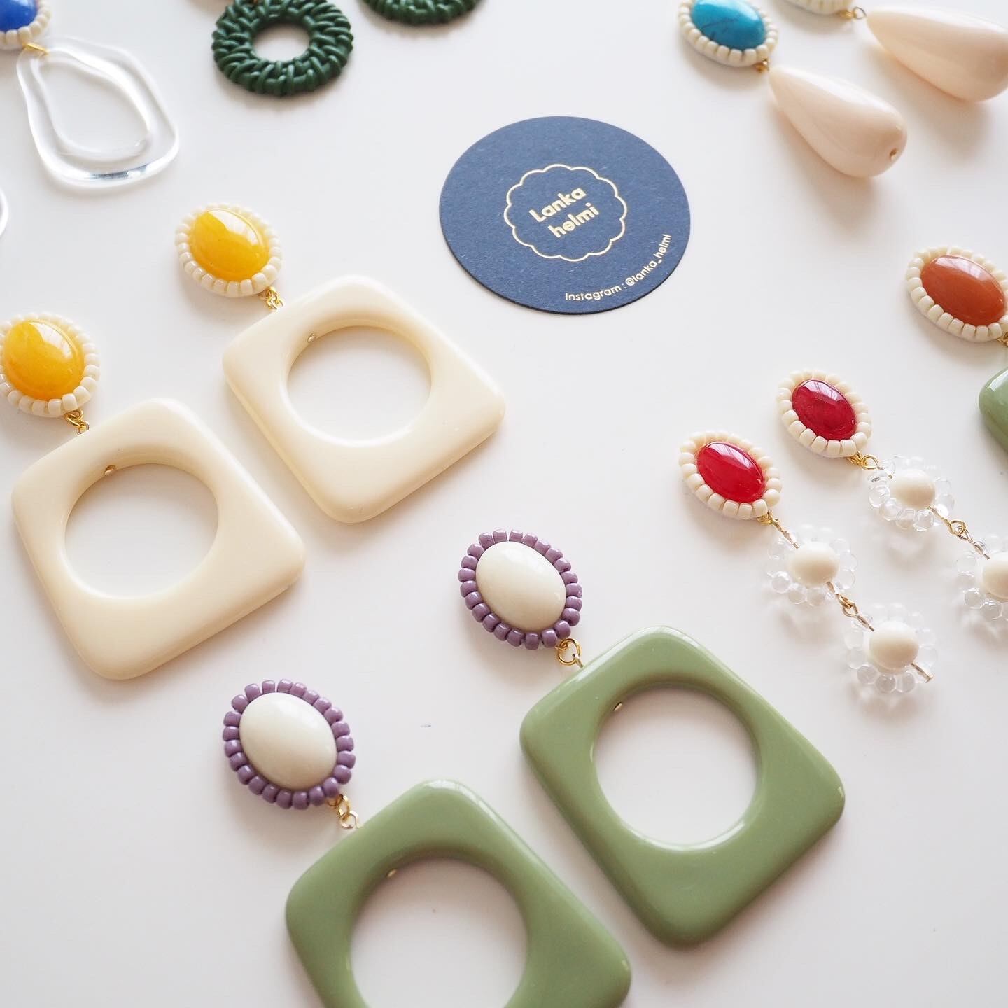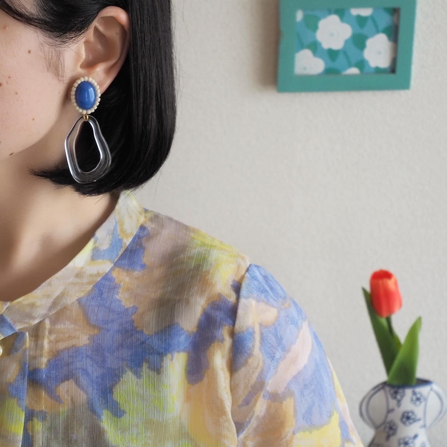 クリアの大ぶりパーツを合わせた耳飾りです。
