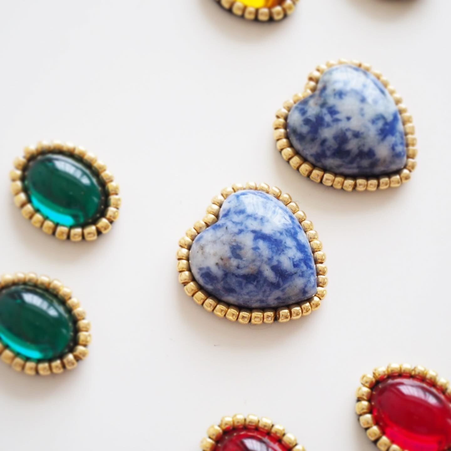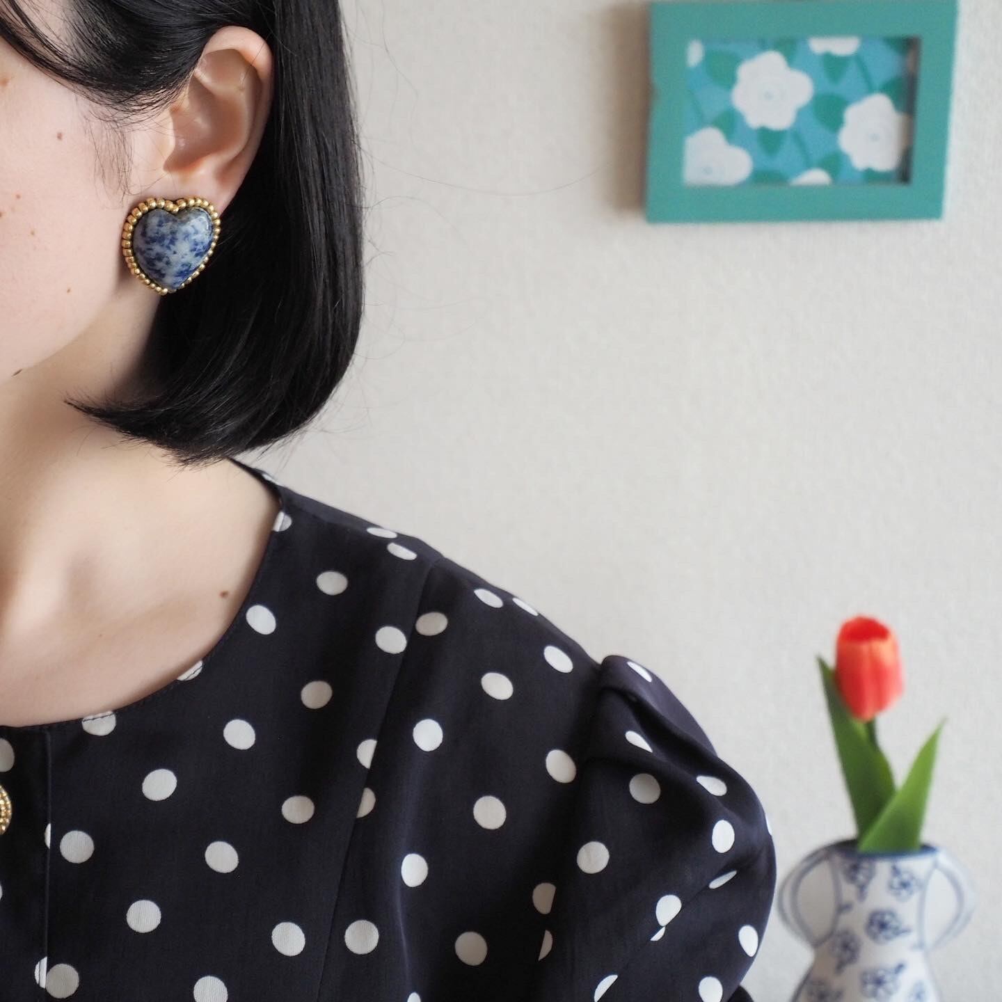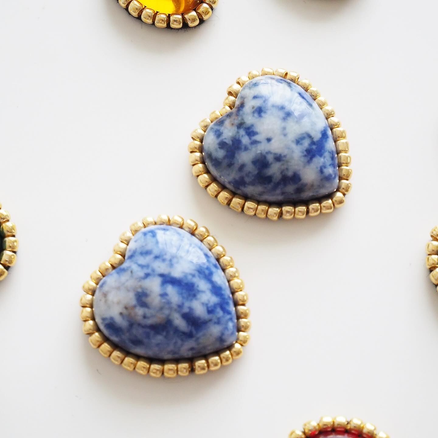 【Outlet SALE!】天然石カボションのBIGハートイヤリング(ブルー×ホワイト)