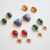 カボションの周りをぐるりとゴールドビーズで刺繍して