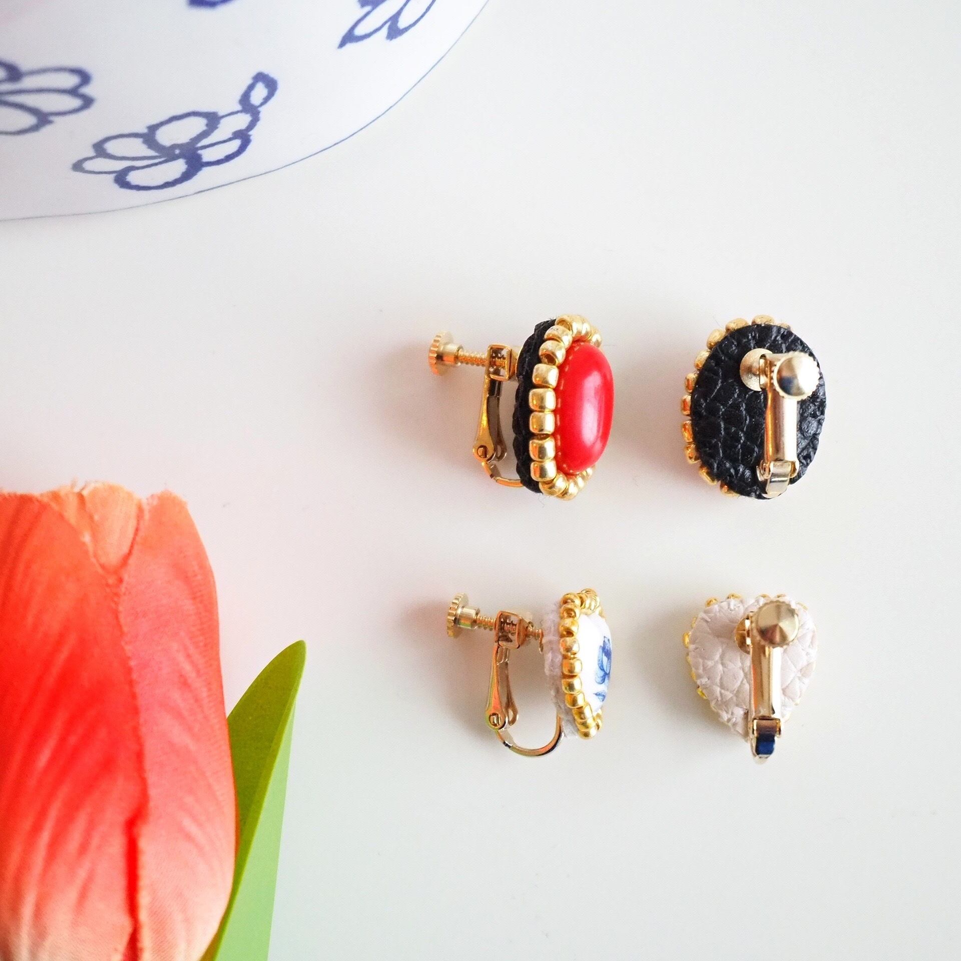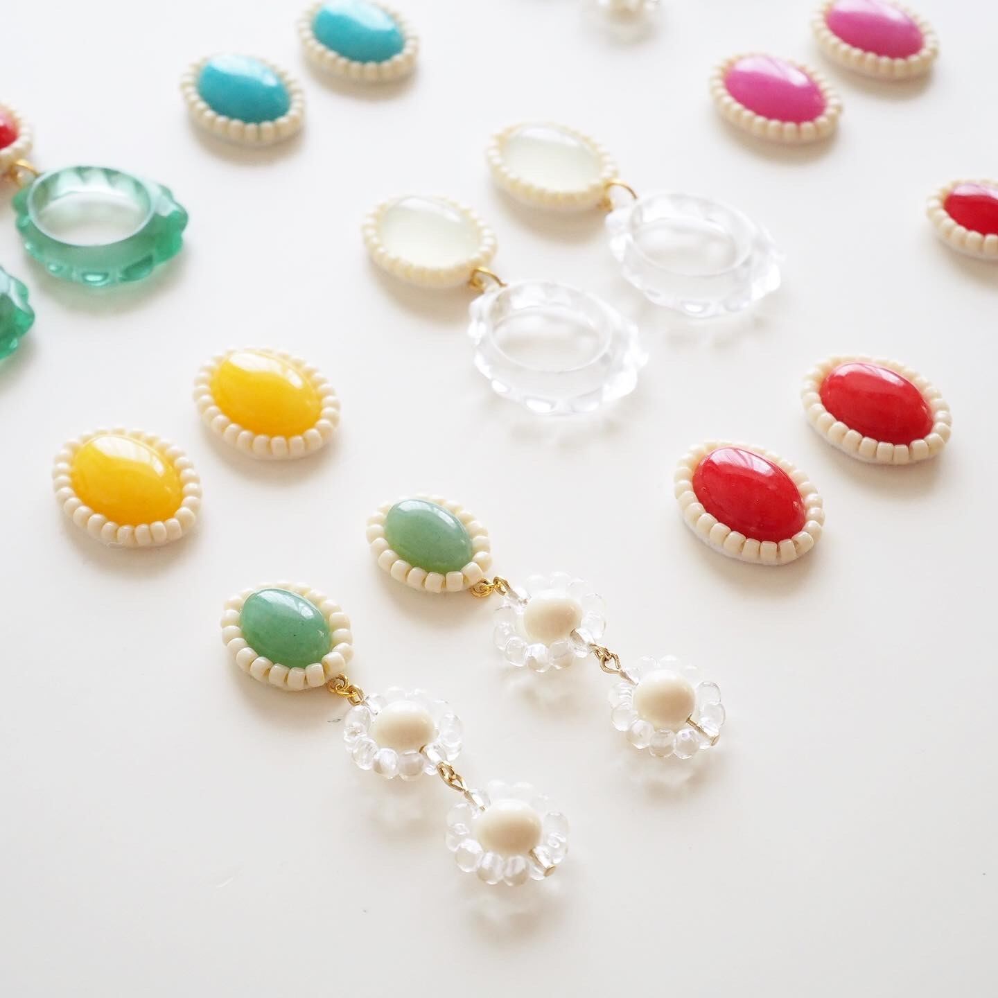 グミみたいなカボションのレトロなイヤリング/ピアス(ミント×ミルク)