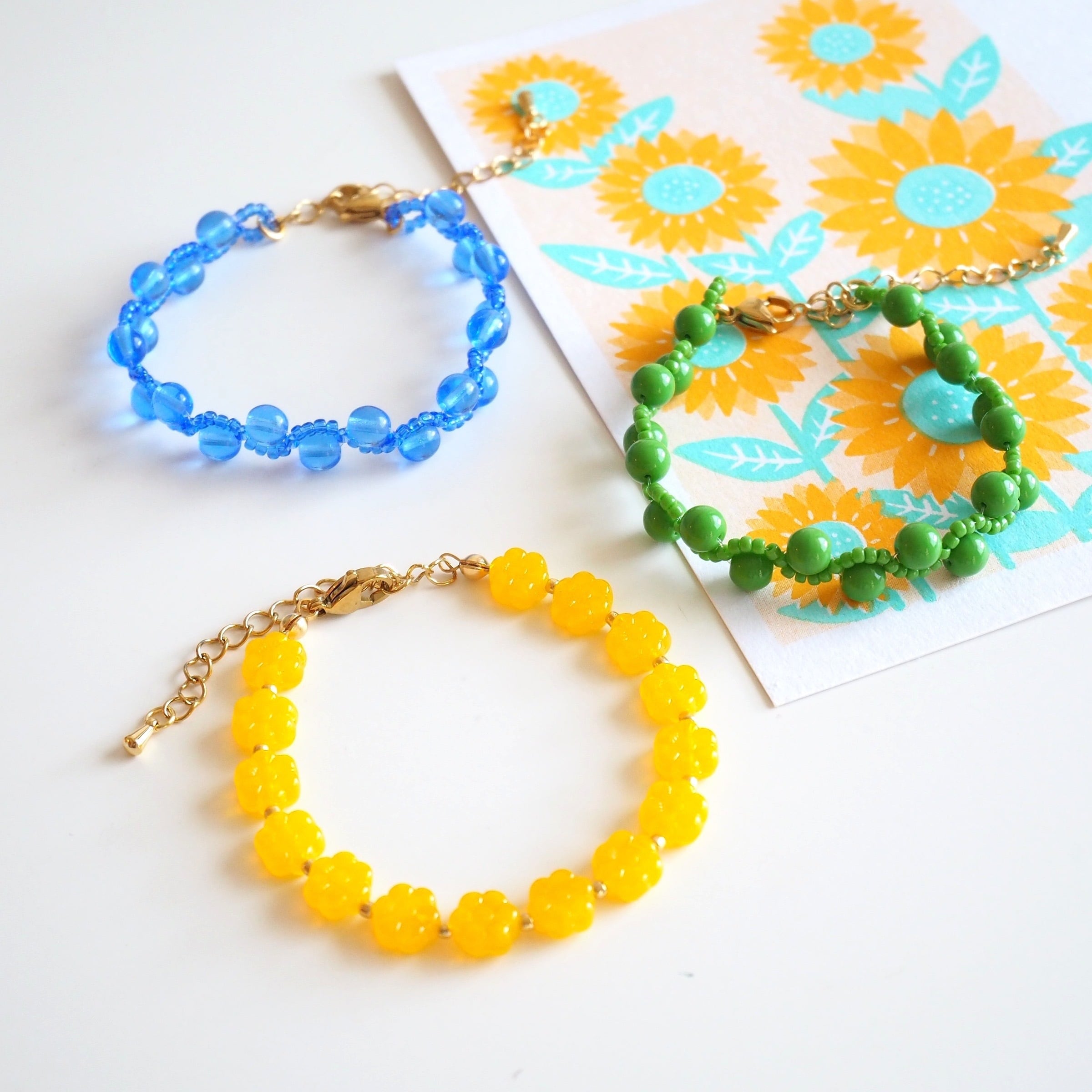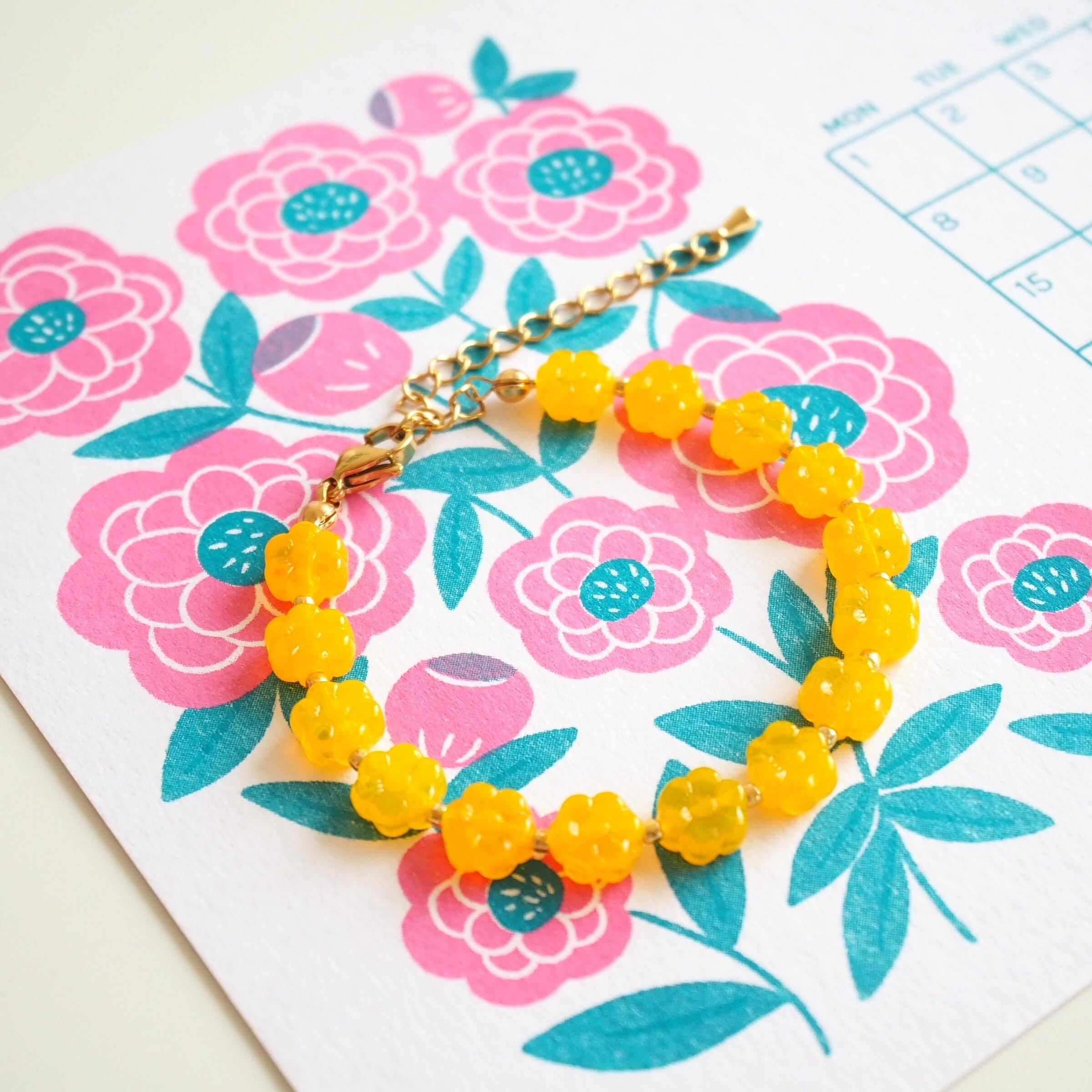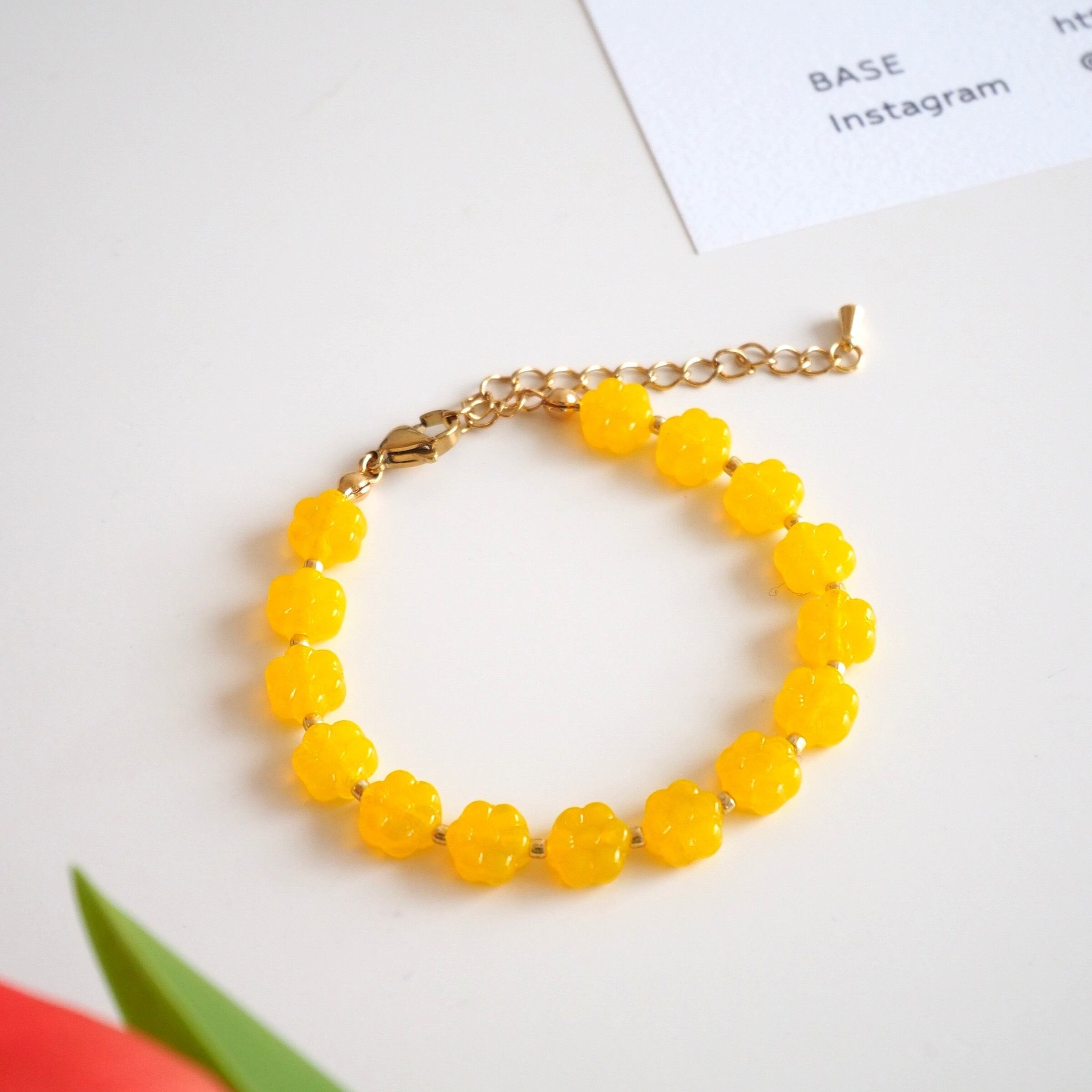 レトロなフラワー型チェコビーズのブレスレット(イエロー)