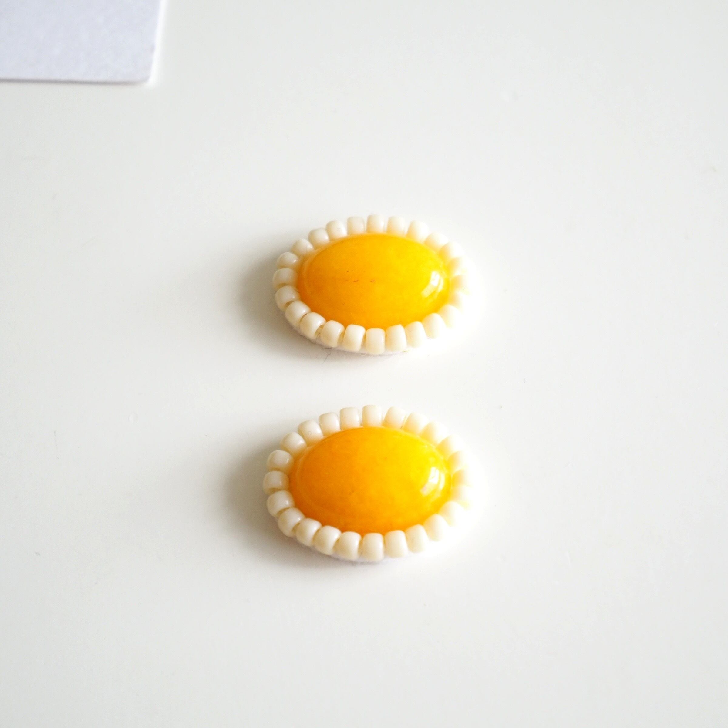黄色 イエロー レモン グミ グミみたいなカボション キャンディ 天然石 ホワイトジェイド オフホワイト 70年代 70s 70年代ファッション レトロピアス レトロイヤリング レトロアクセサリー ビーズ刺繍 刺繍イヤリング 刺繍ピアス